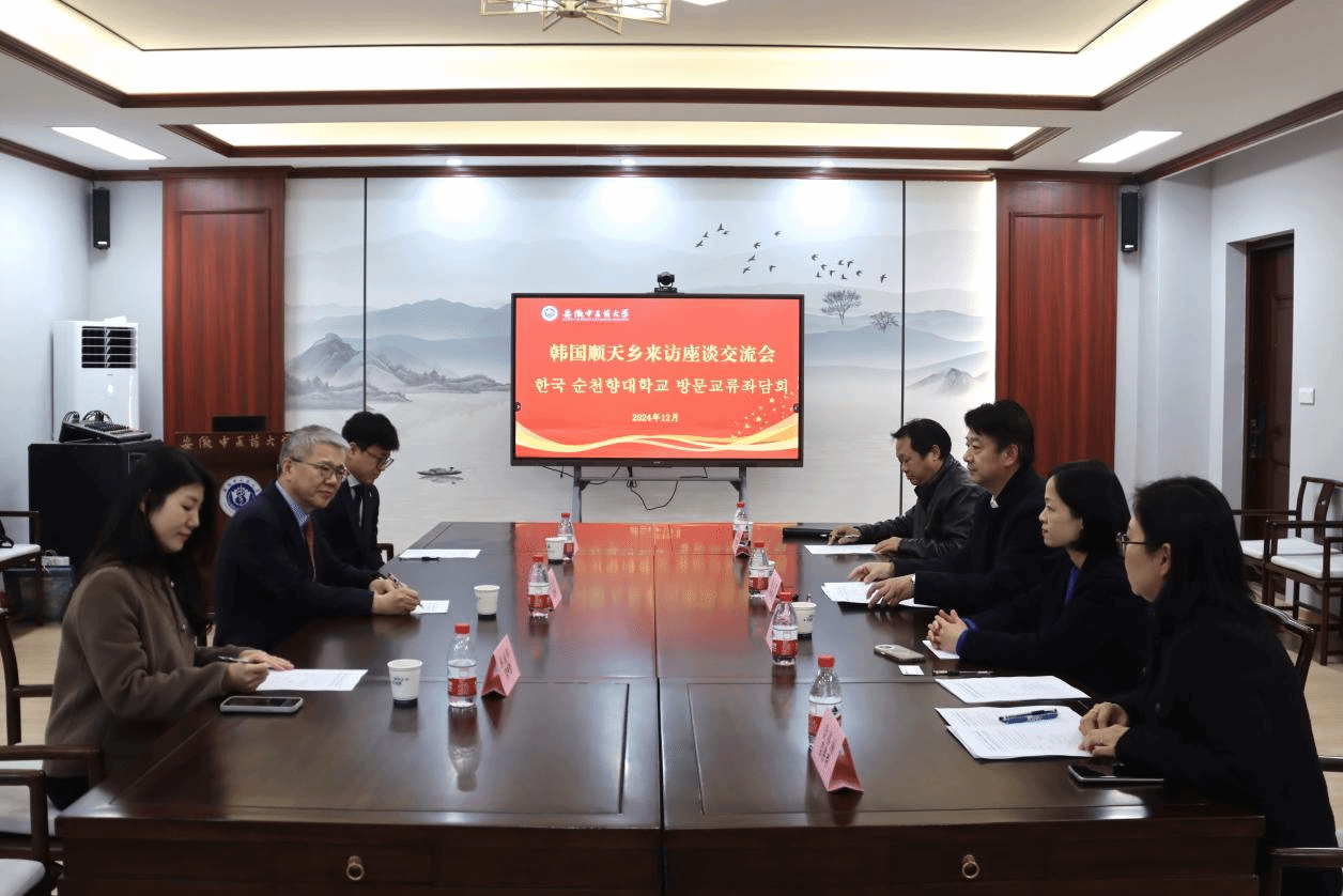 12月5日,韩国顺天乡大学金龙夏副校长一行来访我校并进行座谈交流。学校党委常委、副校长聂久胜出席座谈会。人文与国际教育交流学院(外事办、港澳台办)、医药信息工程学院相关负责同志参加座谈交流。座谈会由人文与国际教育交流学院(外事办、港澳台办)党总支书记金晓琴主持。