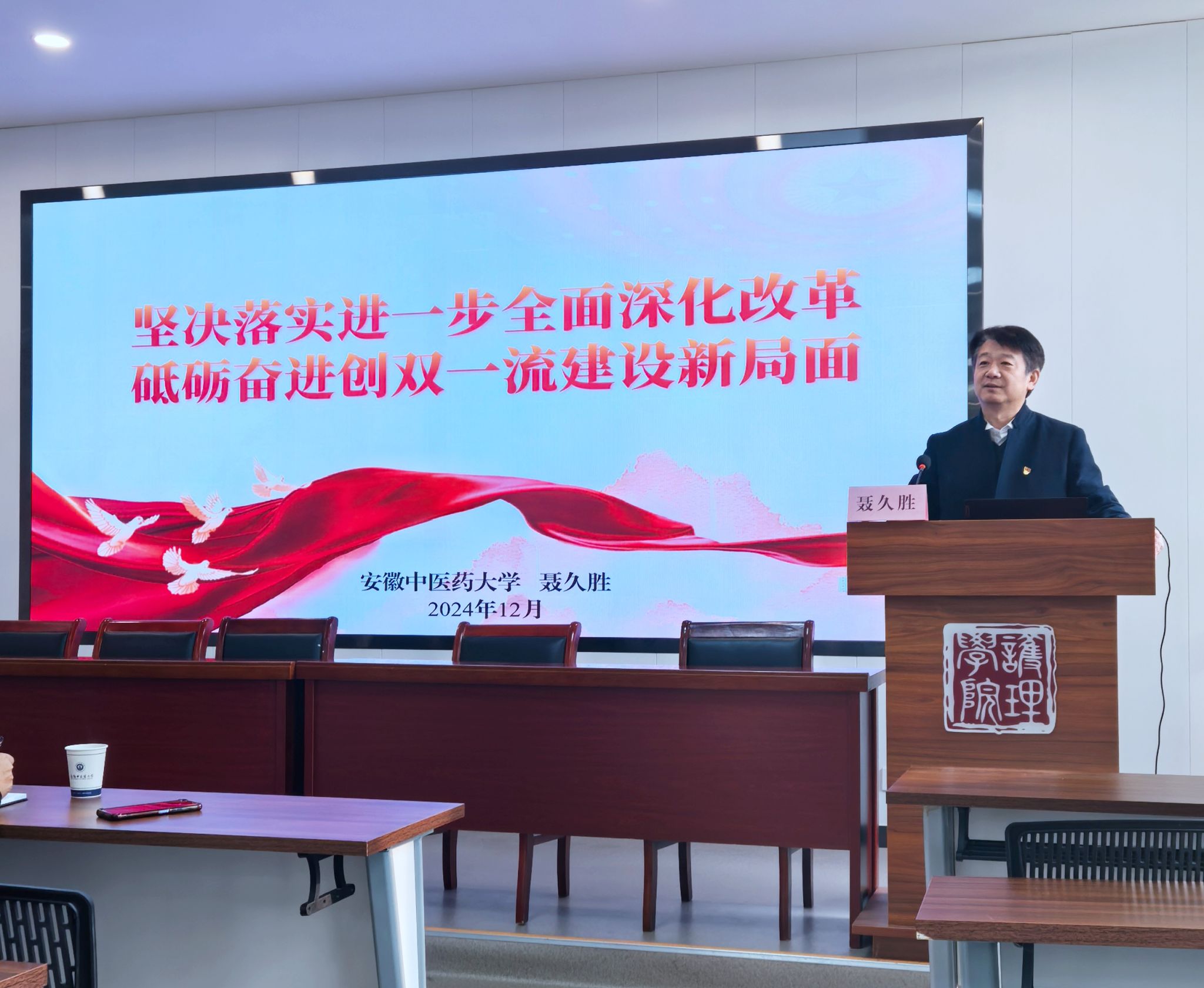学校党委常委、副校长聂久胜以“坚决落实进一步全面深化改革 砥砺奋进创‘双一流’建设新局面”为题为全体学员做第一次授课。聂校长在讲话中指出,一要提高政治站位, 增强学习主动性;二要深刻领会习近平总书记考察安徽重要讲话精神,压实工作责任;三要以钉钉子精神抓好任务落实。同时强调,全体学员要学用结合、以学促干,以师生满意为主线,坚持底线思维,做好各项服务保障工作。