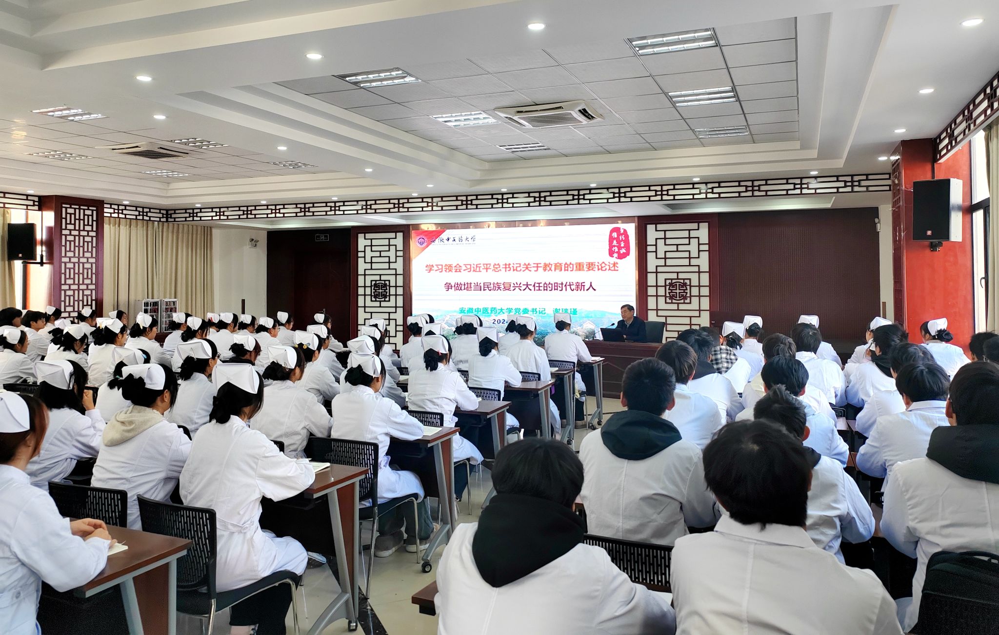 11月26日、29日,学校党委书记谢瑞瑾先后为第一临床医学院2024级中医学专业和护理学院2024级护理学专业学生讲授“形势与政策”课。他以《学习领会习近平总书记关于教育的重要论述 争做堪当民族复兴大任的时代新人》为题,从习近平总书记关于教育的重要论述的背景视野、科学内涵、战略目标三个方面展开分析,进行详细的理论阐述,深入浅出阐释习近平总书记关于教育的“九个坚持”重要内容,并结合学校“振兴中医药,建设‘双一流’”发展目标,指出安中学子的使命担当,勉励同学们立大志、明大德、成大才、担大任,潜心学业科研、弘扬校训精神,笃实身践力行、传承中医药事业,勇敢肩负起时代赋予的重任,在实现人生出彩的奋斗中,为中华民族伟大复兴贡献智慧和力量。