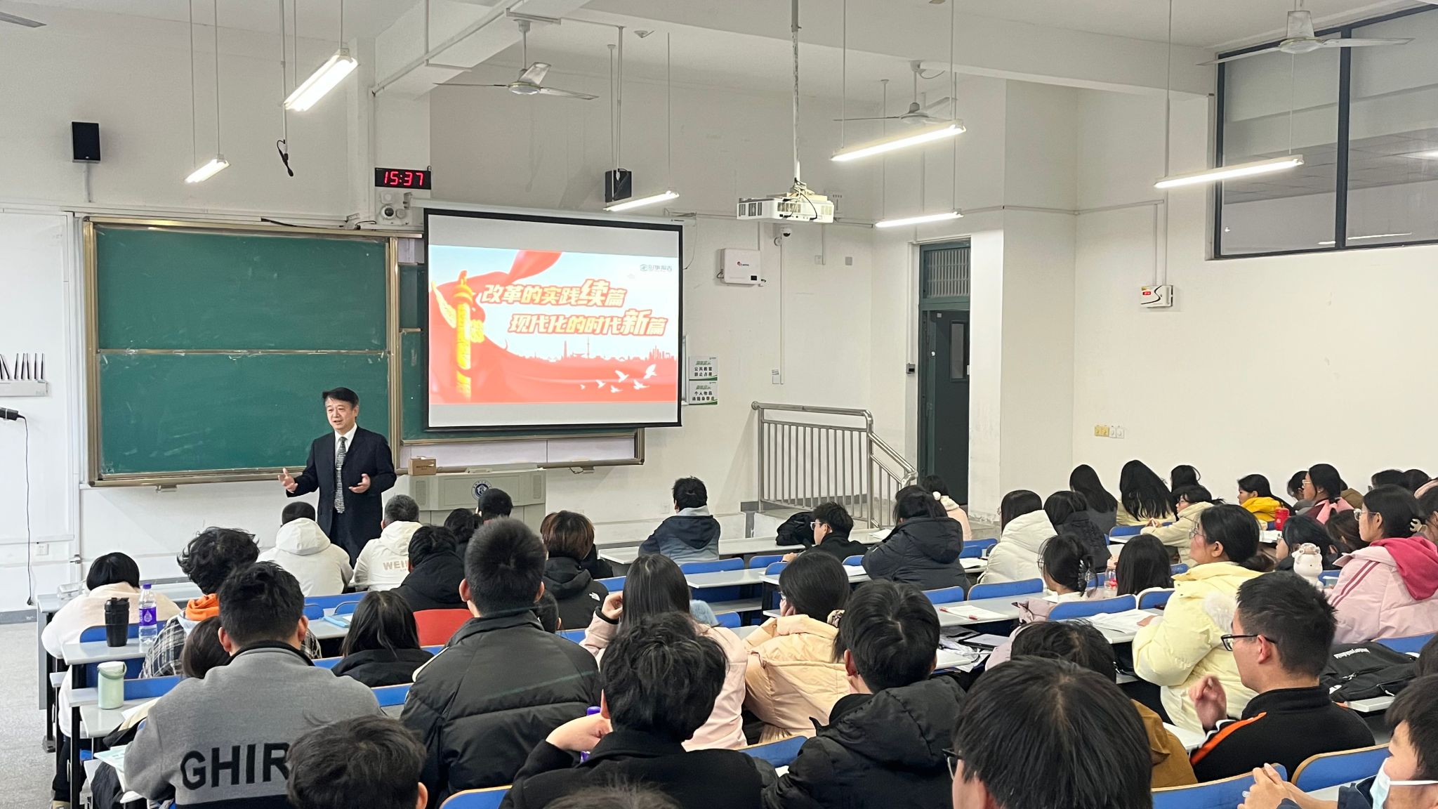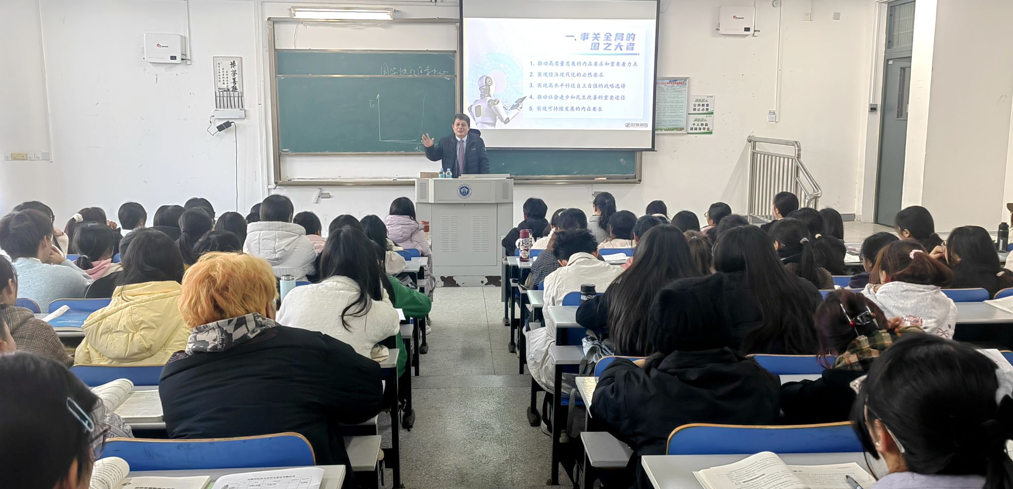 校领导带头为大学生讲授“形势与政策”课是我校长期坚持的一项优良传统,充分体现了学校党委对思政课建设的高度重视,对培养学生的全球视野、家国情怀和社会责任感具有极为重要的作用,助力青年大学生成长为让党放心、爱国奉献、担当民族复兴重任的时代新人。(项银霞、聂多伟、柳莺莺、孙娜娜、尤志成、李秋晨/文图 黄学武/审核)
