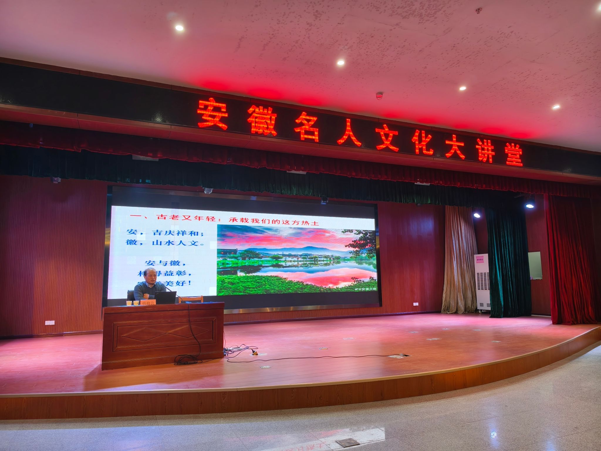 讲座从古老又年轻:承载我们的这方热土;勇敢善奉献:生活在热土上的人们;好学而上进:以“三地一区”谱写新篇;弘扬名人精神,建功伟大时代等四个方面,从古至今深入浅出系统讲解安徽名人历史文化故事,阐释安徽名人精神,提振人民自信心自豪感。