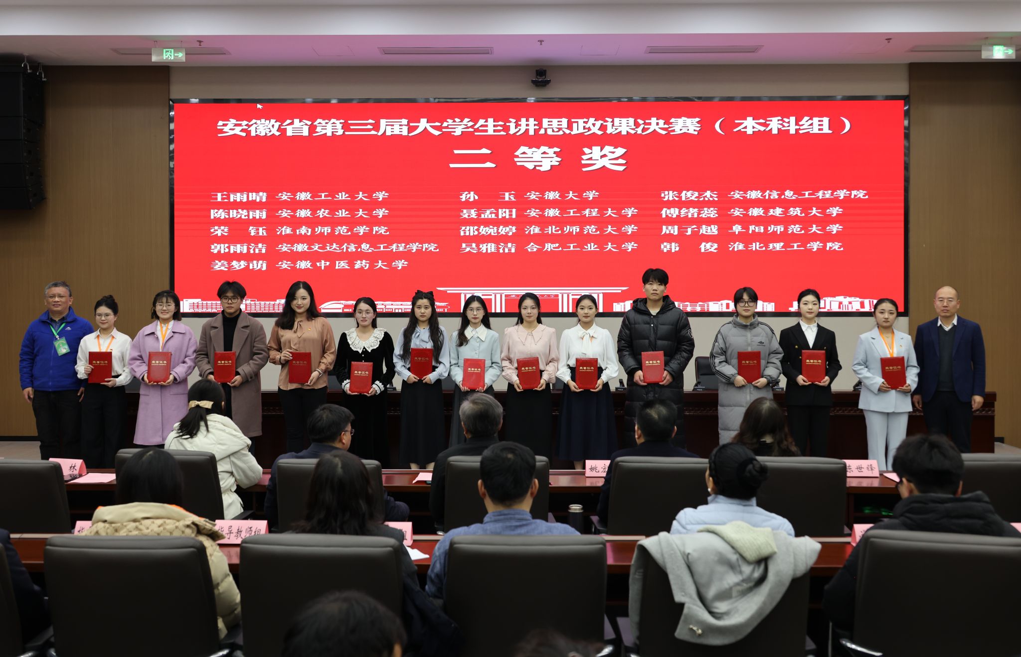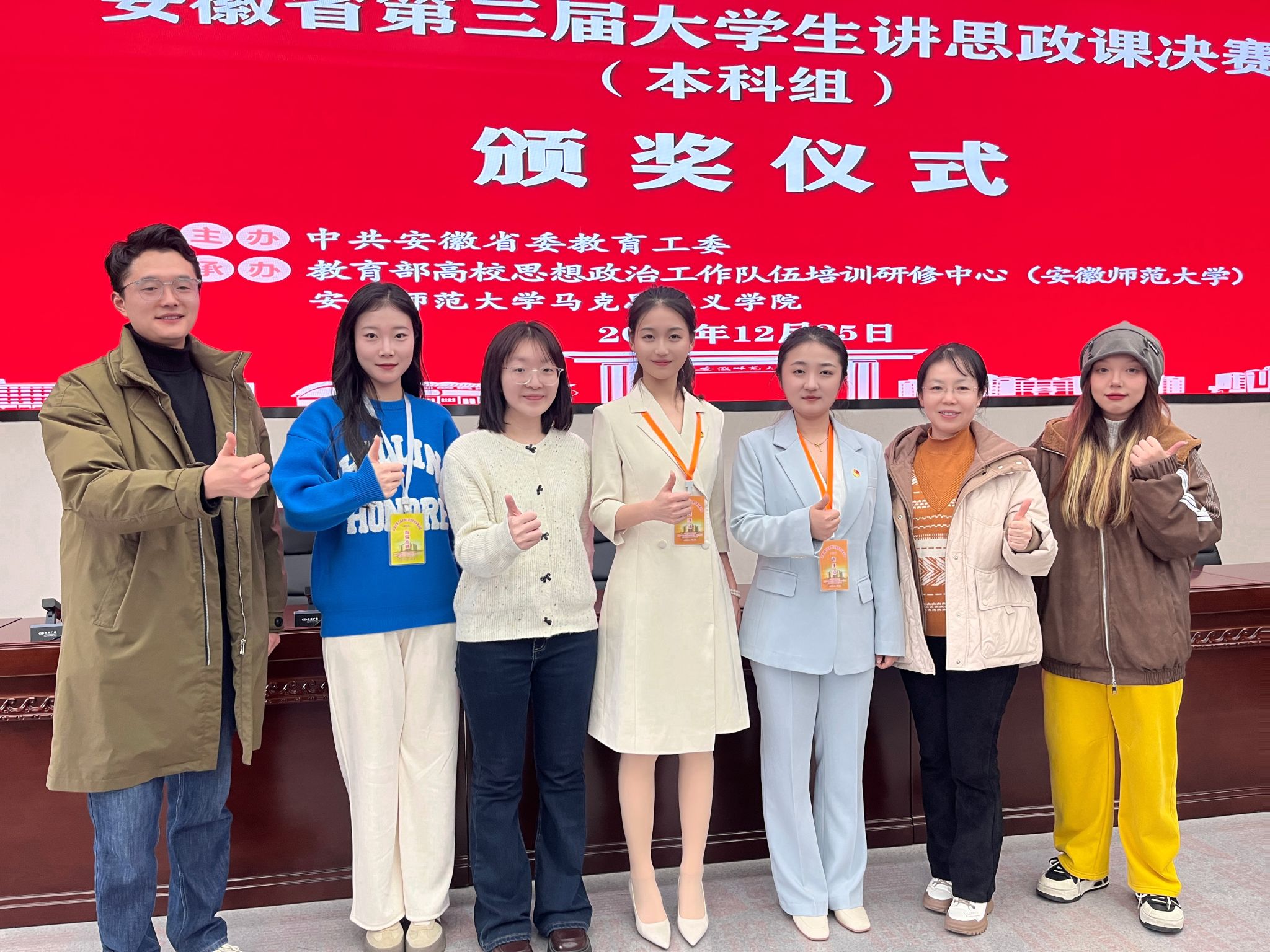 为深入学习贯彻习近平总书记对学校思政课建设作出的重要指示批示精神,全面落实新时代学校思政课建设推进会精神,深化思政课改革创新,着力推进“大思政课”建设,12月25日,由中共安徽省委教育工委主办的“七十五载薪火传承 千秋伟业奋斗有我”安徽省第三届大学生讲思政课决赛在安徽师范大学举办。决赛现场,有经过皖南、皖中、皖北三个片区赛角逐产生的30所高校的45支队伍参赛。经过激烈角逐,我校入围决赛的2支参赛队伍荣获一等奖1项,二等奖1项,这是我校学子连续三届斩获一等奖以上成绩。