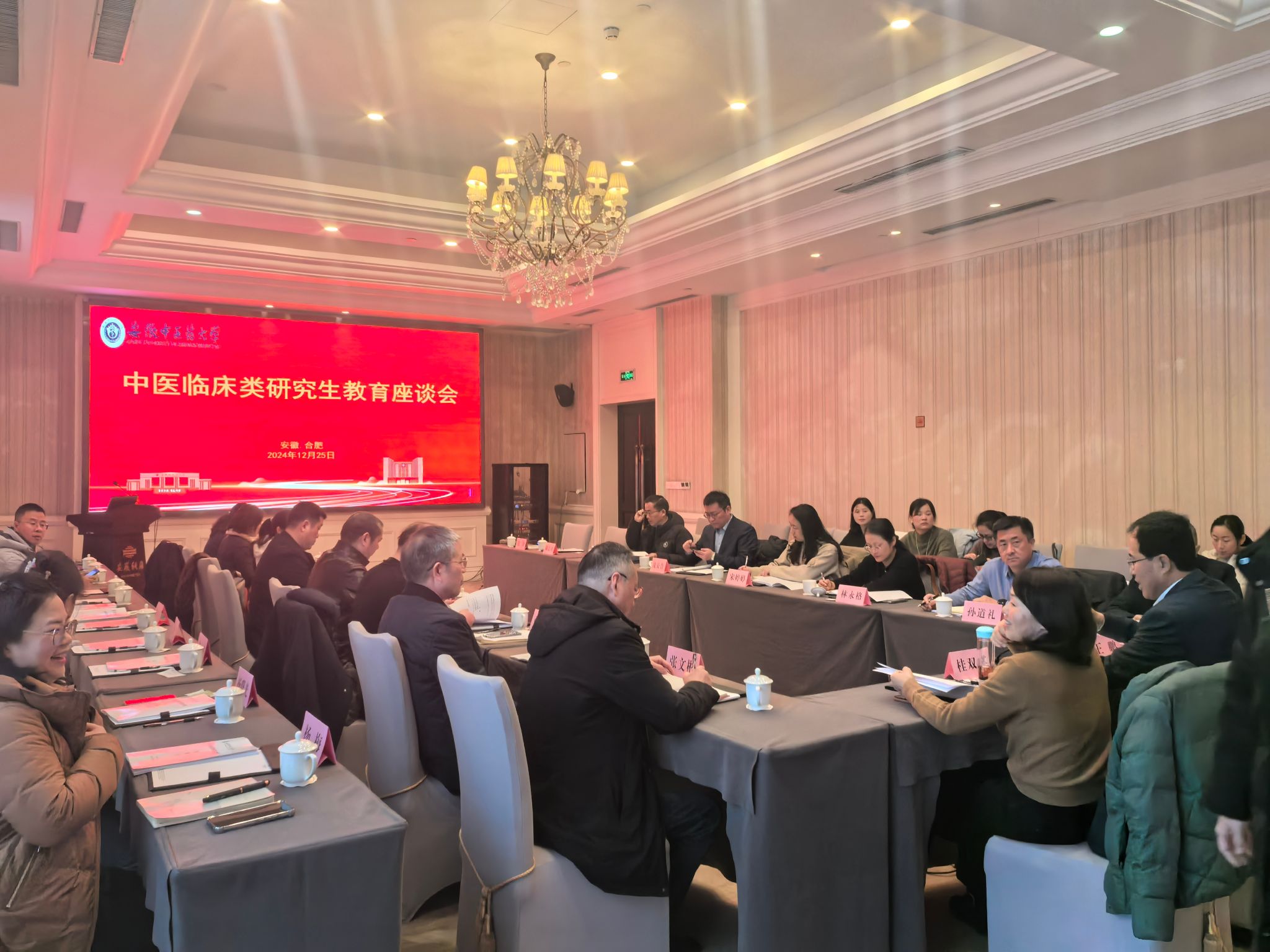 12月25日上午,学校党委常委、副校长桂双英主持召开中医临床类研究生教育座谈会,围绕“贯彻落实新修订的《中华人民共和国学位法》,推动学校专业学位研究生培养管理高质量发展”主题,以培养管理工作存在的实际问题为导向展开座谈研讨。第一临床医学院、第二临床医学院、神经病学研究所、铜陵市中医医院、六安市中医院、芜湖市中医医院、滁州中西医结合医院、太和县中医院等省内各中医专硕研究生规培基地的分管领导和科室负责人,学生处、医院事务管理处、财务处、研究生院班子成员参加了会议。会议由研究生院院长王鹏主持。
