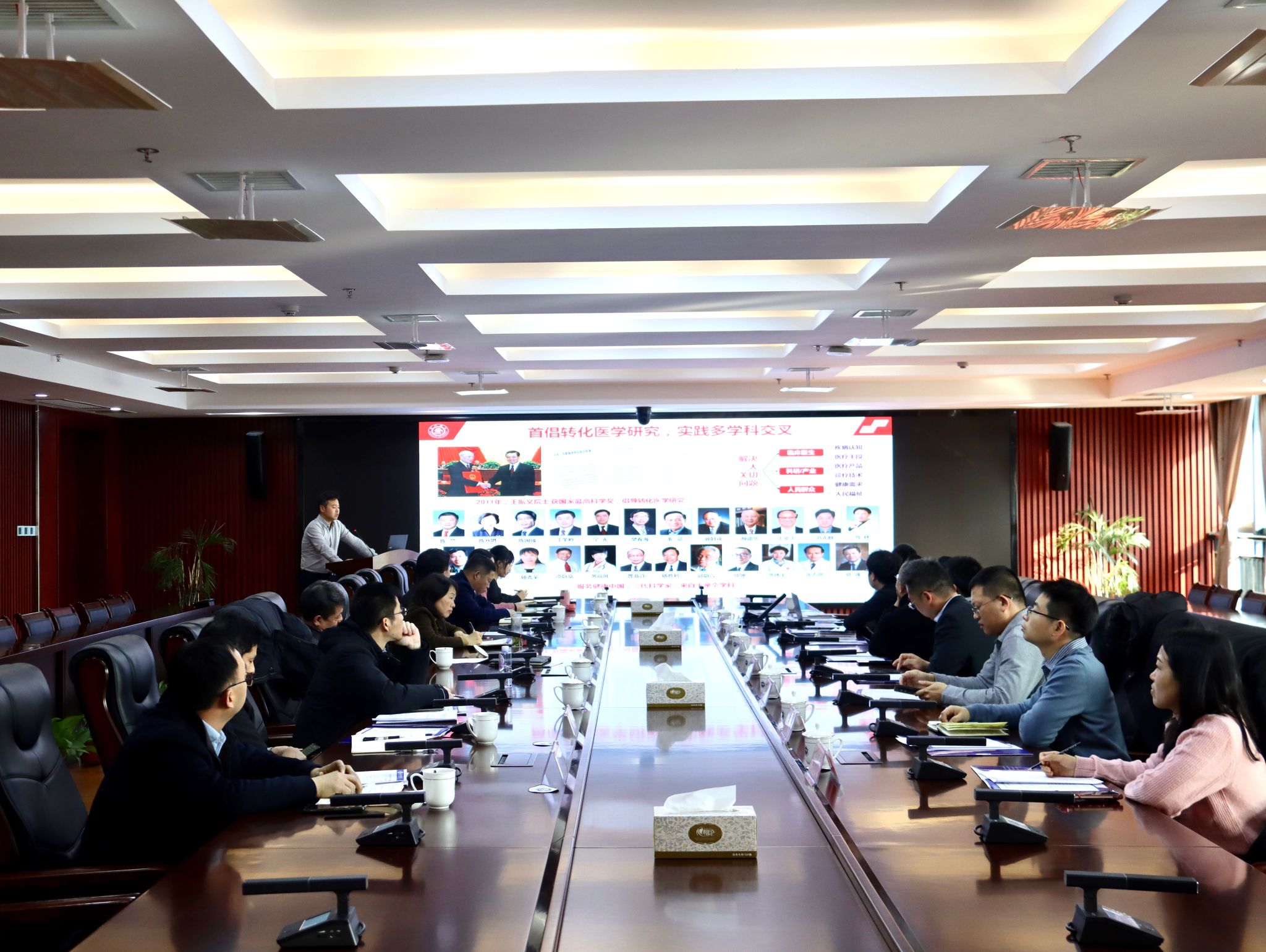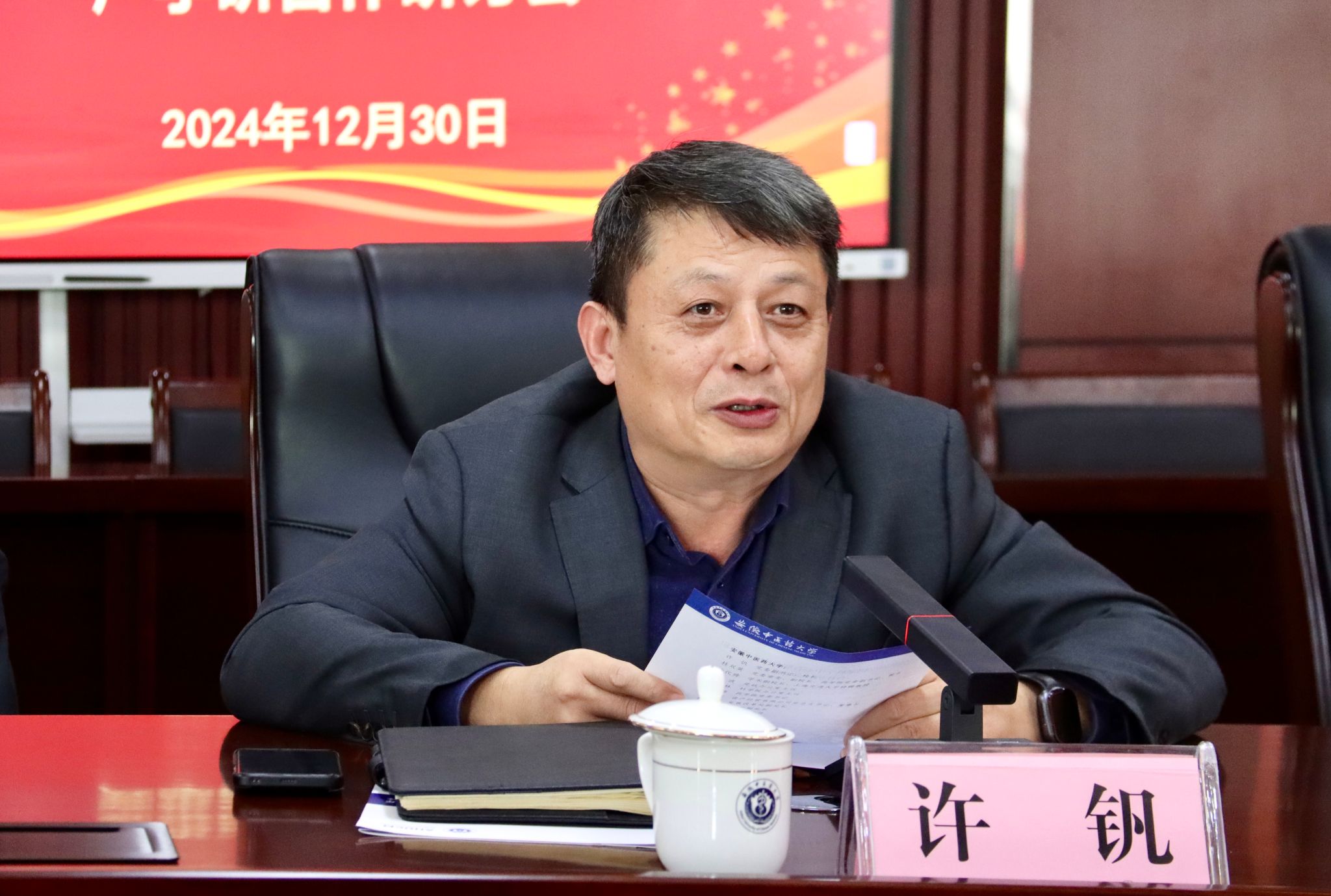 12月30日,转化医学国家科学中心合肥分中心举办产学研合作研讨会。校党委副书记、校长许钒,校党委常委、副校长桂双英,校学术副校长、上海交通大学特聘教授凌代舜出席会议。校党政办公室、发展改革处、科技处、省科学院办公室、药学院、资产经营有限公司等部门负责同志参会。