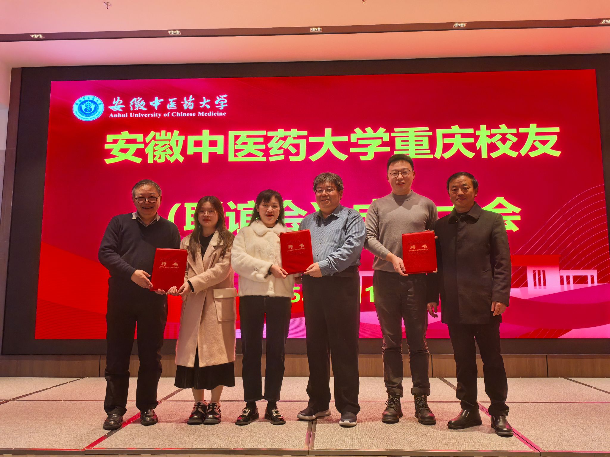 魏骅、彭代银、吴达武等为重庆校友联谊会第一届理事会成员颁发聘书。