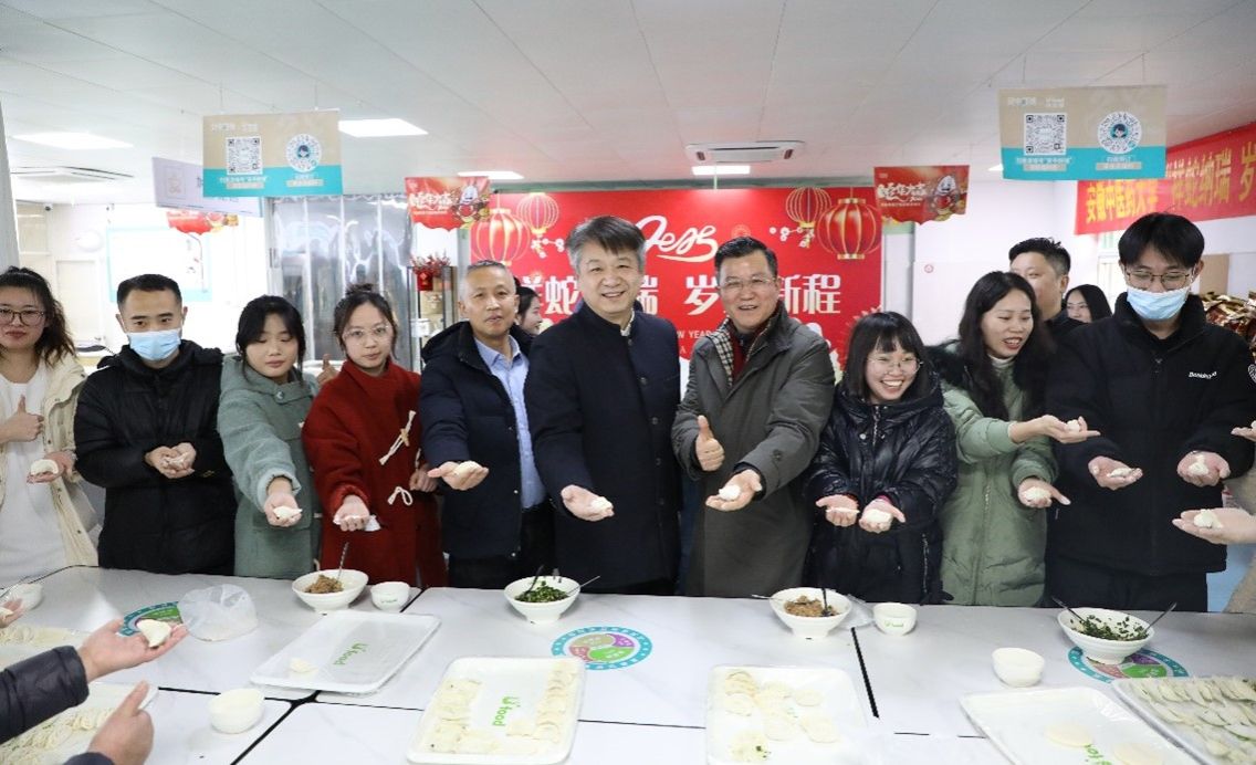 老师和同学们围坐在一起包饺子。大家一边包饺子一边交流着家乡的过年习俗和校园生活的点滴,现场气氛温馨而融洽。