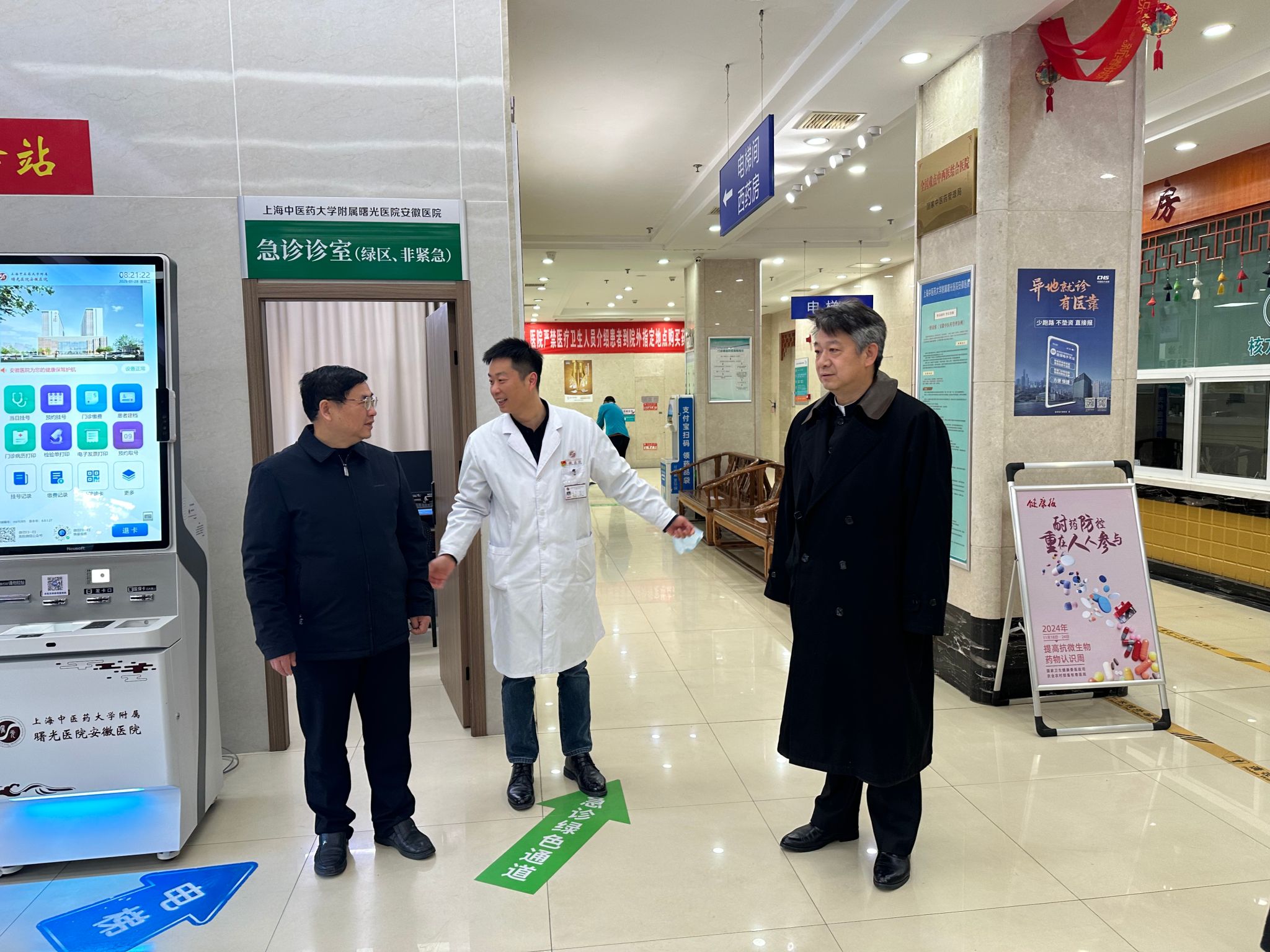 谢瑞瑾一行先后抵达第一临床医学院、第二临床医学院、曙光医院安徽医院和神经病学研究所附属医院。在急诊科、重症医学科、药房等区域,谢瑞瑾与一线医务人员亲切交流,细致询问日常工作的难点与需求,对他们在节假日期间默默坚守、守护人民健康的奉献精神给予高度赞扬。期间,谢瑞瑾还与寒假留院的实习生深入交谈,关心他们的生活与学业进展,鼓励大家在新的一年取得更大进步。