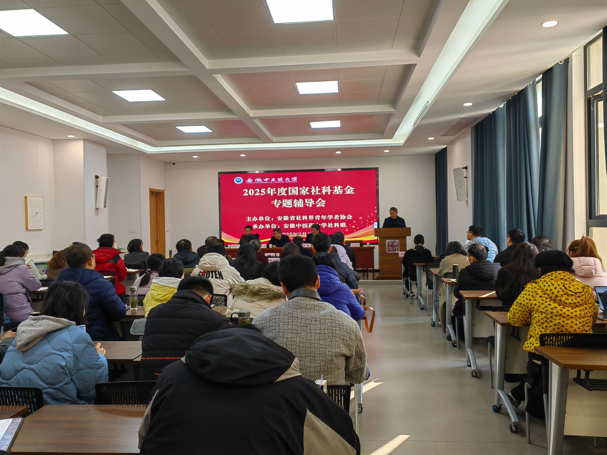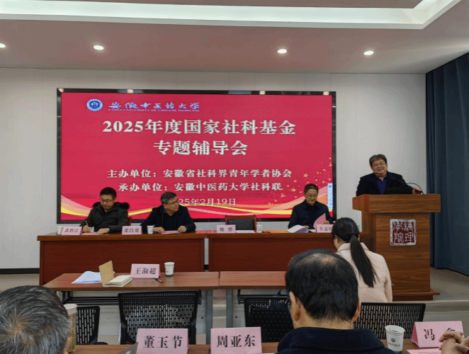 2月19日上午,由安徽省社科界青年学者协会主办、安徽中医药大学社科联承办的2025年度国家社科基金专题辅导会在安徽中医药大学少荃湖校区举行。