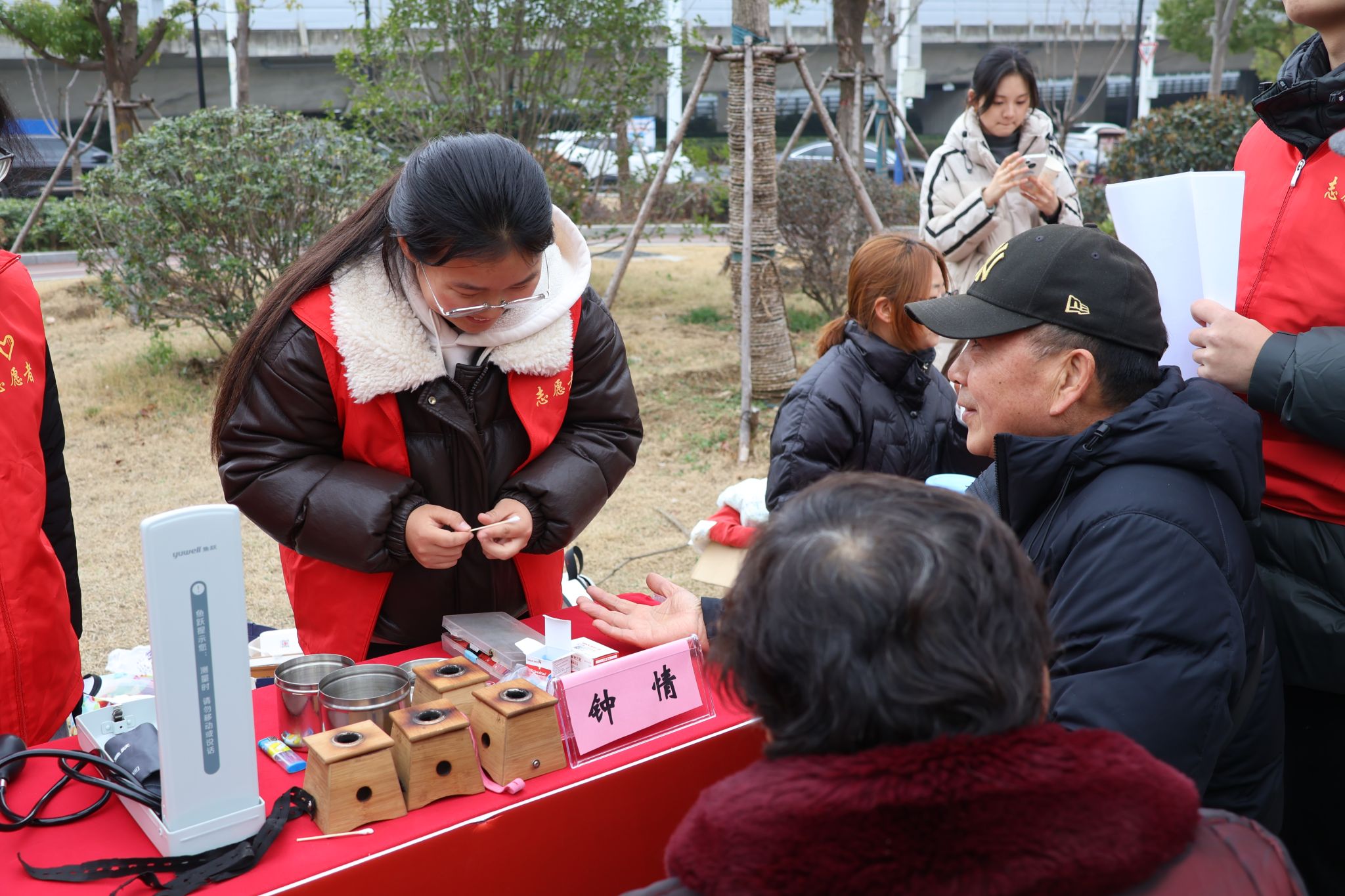 3月5日下午,安徽省精神文明建设办公室、省总工会、团省委、省妇联联合主办的2025年安徽省暨合肥市“学雷锋·文明实践我行动”主题活动,在新站高新区举行。我校团委组织师生在文明实践展示区为市民群众提供血糖血压测量、针灸推拿、中医义诊、茶饮品尝等服务。