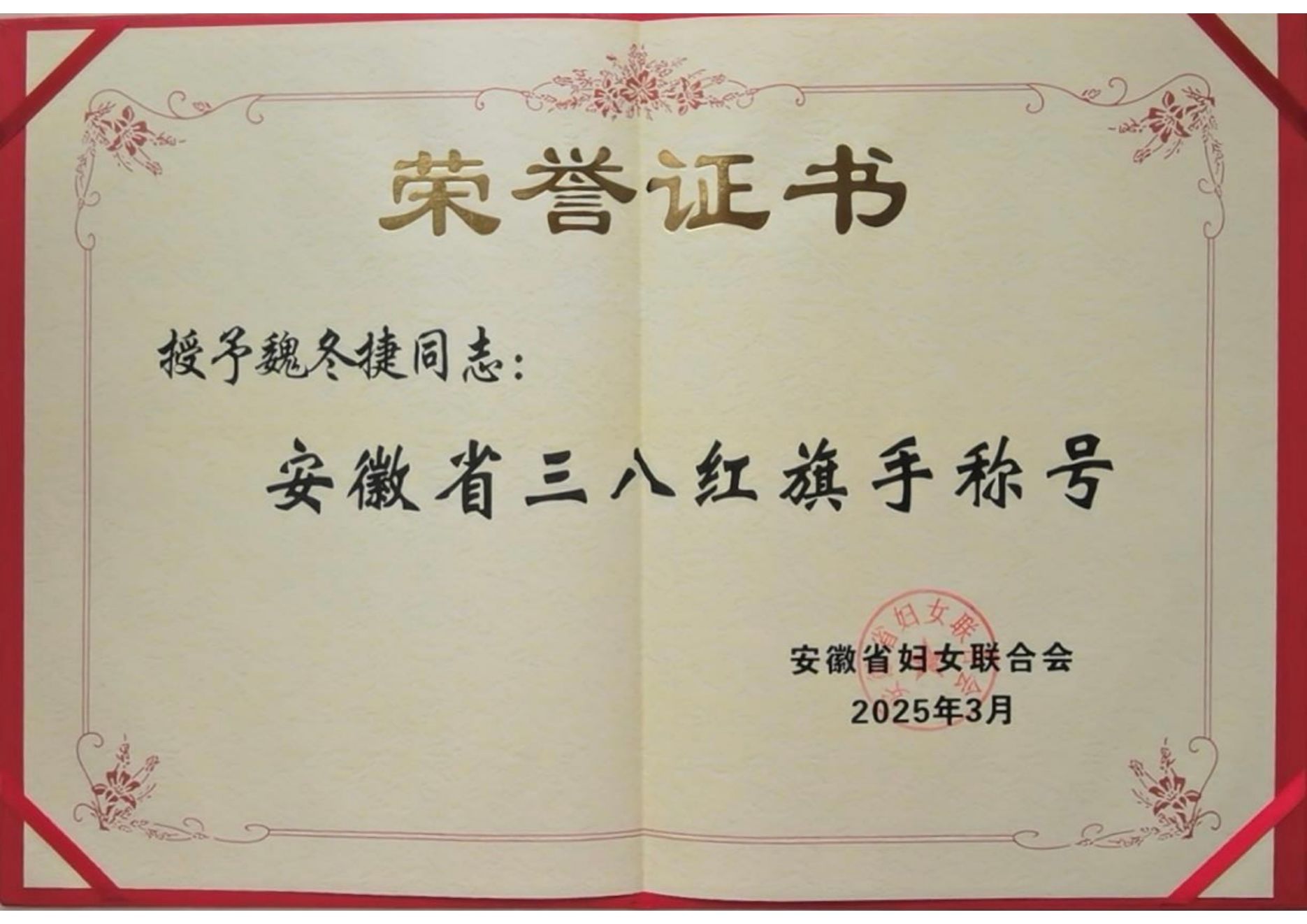 在第115个“三八”国际劳动妇女节来临之际,3月6日,安徽省妇女联合会发布2025年安徽省三八红旗手标兵、安徽省三八红旗手、安徽省三八红旗集体名单。其中,我校马克思主义学院魏冬捷教授荣获“安徽省三八红旗手”荣誉称号。