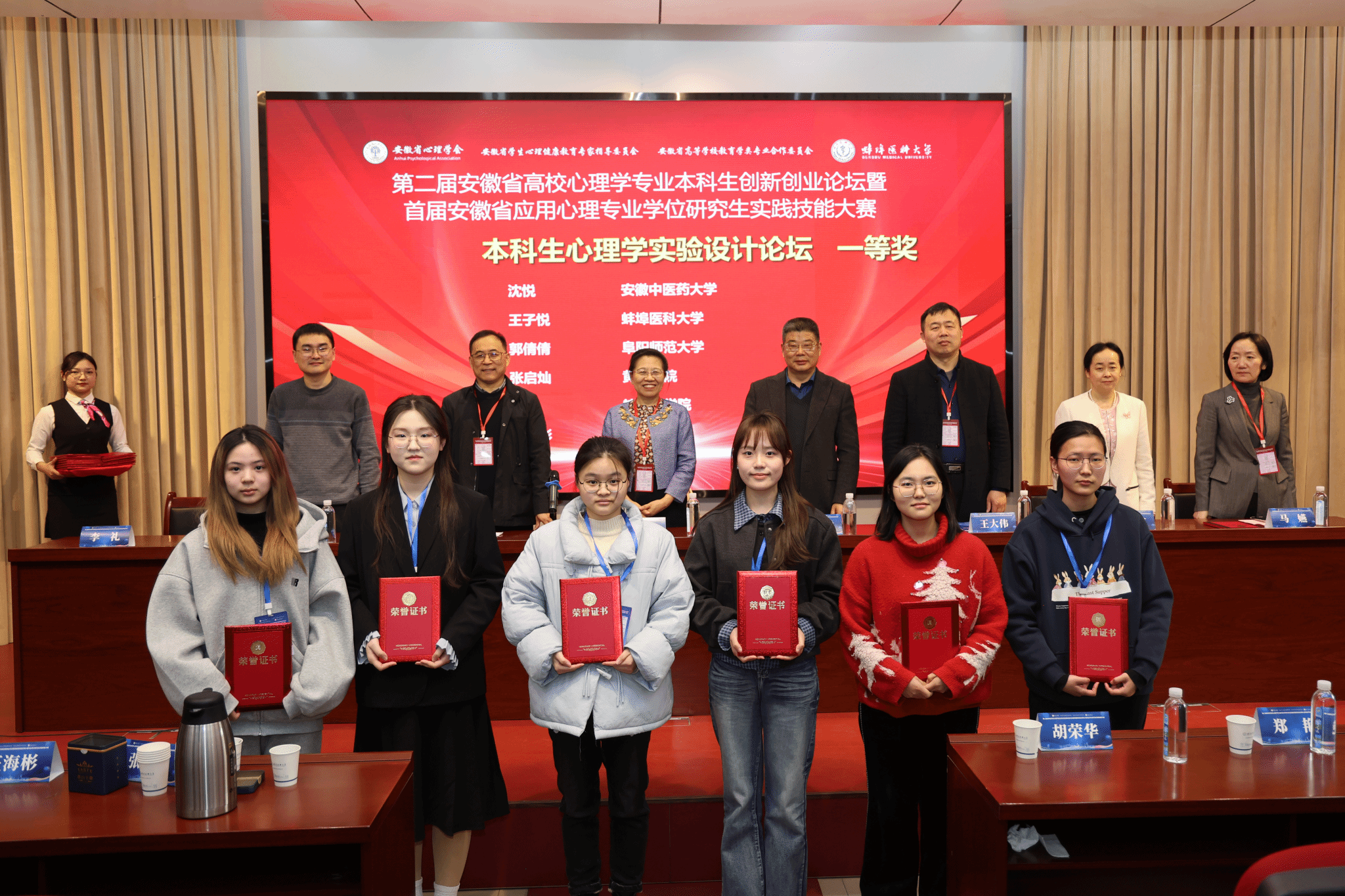3月8日至9日,由安徽省心理学会、安徽省学生心理健康教育专家指导委员会、安徽省高等学校教育学类专业合作委员会、蚌埠医科大学联合主办的第二届安徽省高校心理学专业本科生创新创业论坛圆满落幕。我校参赛团队在大赛中表现优异,共斩获一等奖2项、二等奖5项、三等奖5项,学校获优秀组织单位奖。