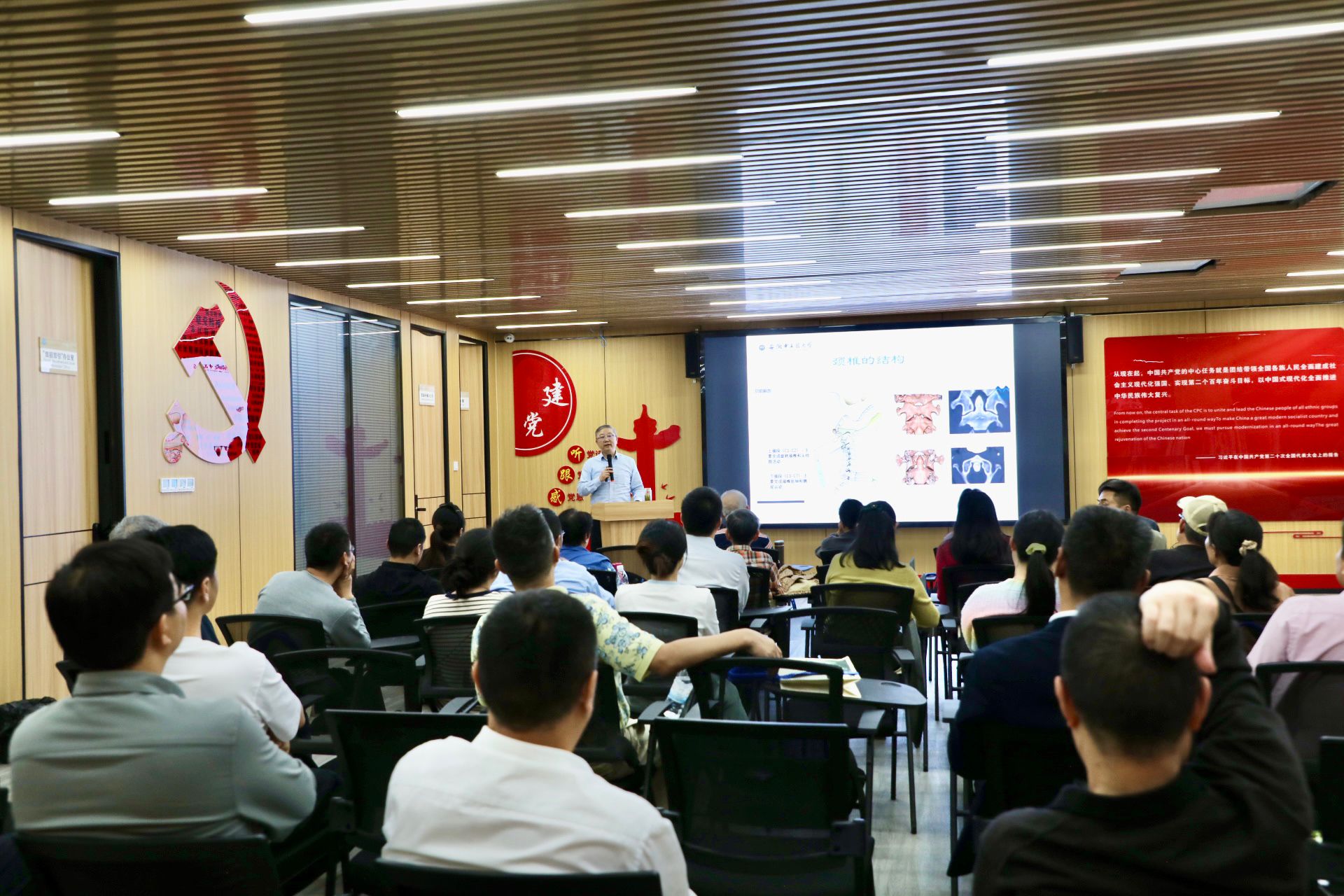 全国人大代表、我校第二附属医院急诊科副主任医师徐晓婵,全国政协委员、台湾民主自治同盟第十一届中央常务委员会委员,省政协常委、省侨联常委、省台联会长林敏作全国两会精神宣讲。