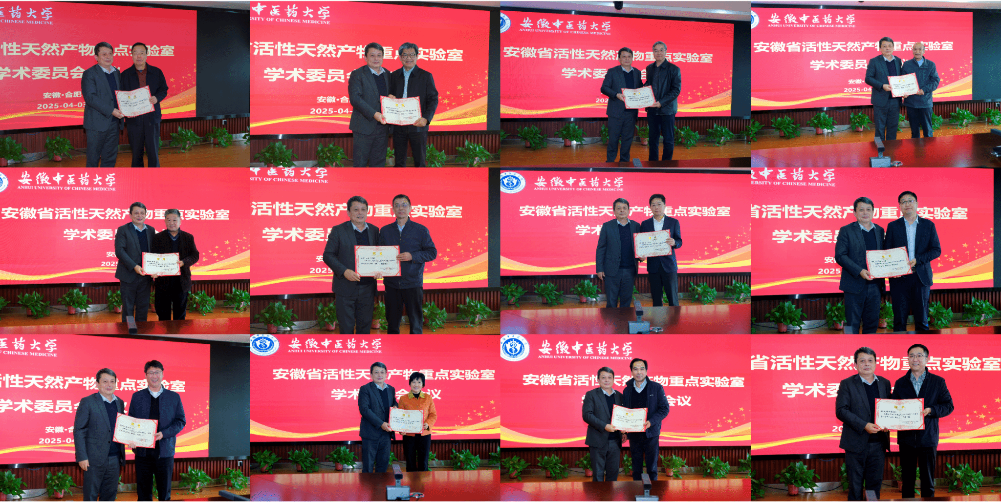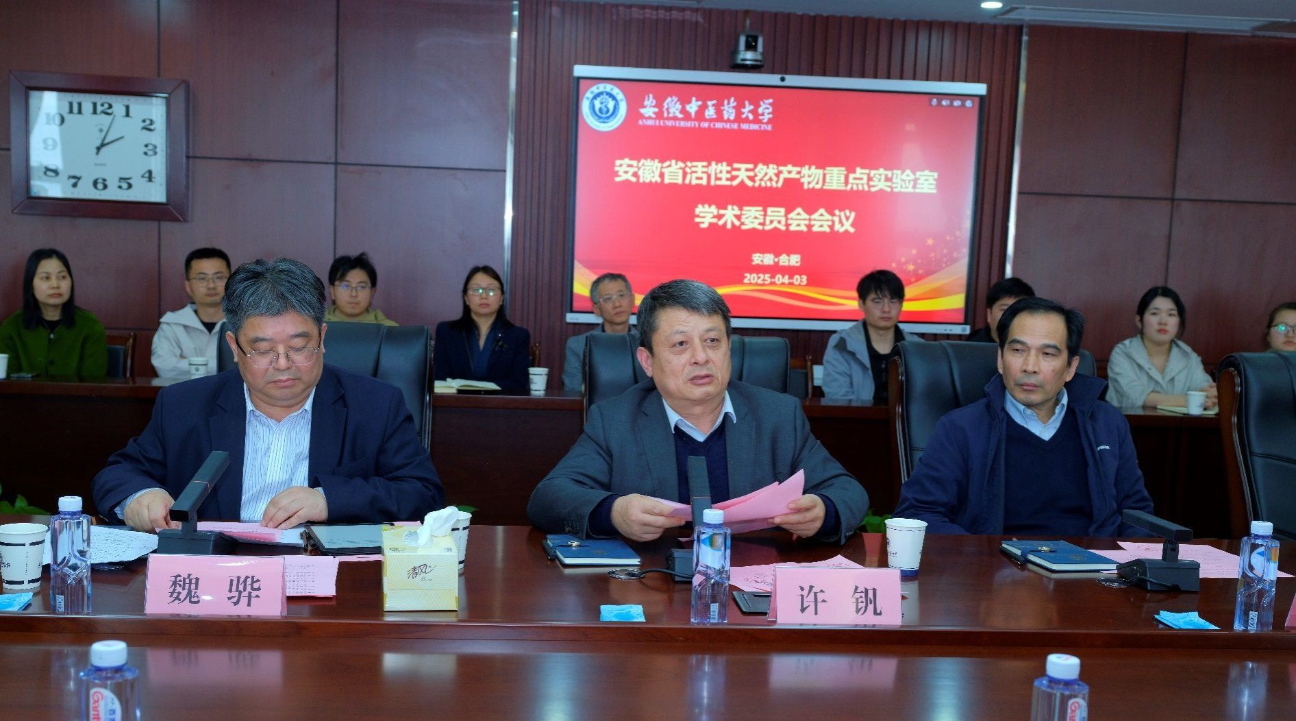 4月3日,学校组织召开"安徽省活性天然产物重点实验室学术委员会会议"。以中国科学院上海药物研究所岳建民院士为主任委员,山东大学娄红祥教授和中国药科大学孔令义教授为副主任委员,中国医学科学院药物研究所石建功研究员、安徽医科大学魏伟教授、中南民族大学赵金华教授、云南大学罗晓东教授、中国科学院合肥物质科学研究院刘青松研究员、中国科学院昆明植物研究所黄胜雄研究员、安徽省食品药品检验研究院张亚中主任中药师、安徽中医药大学戴敏教授、刘吉开教授及杨小龙教授为委员的新一届学术委员会委员和学校党委副书记、校长许钒,党委常委、副校长魏骅、桂双英,科学院办公室及药学院有关负责同志、实验室学术骨干参加了本次会议,会议由魏骅主持。