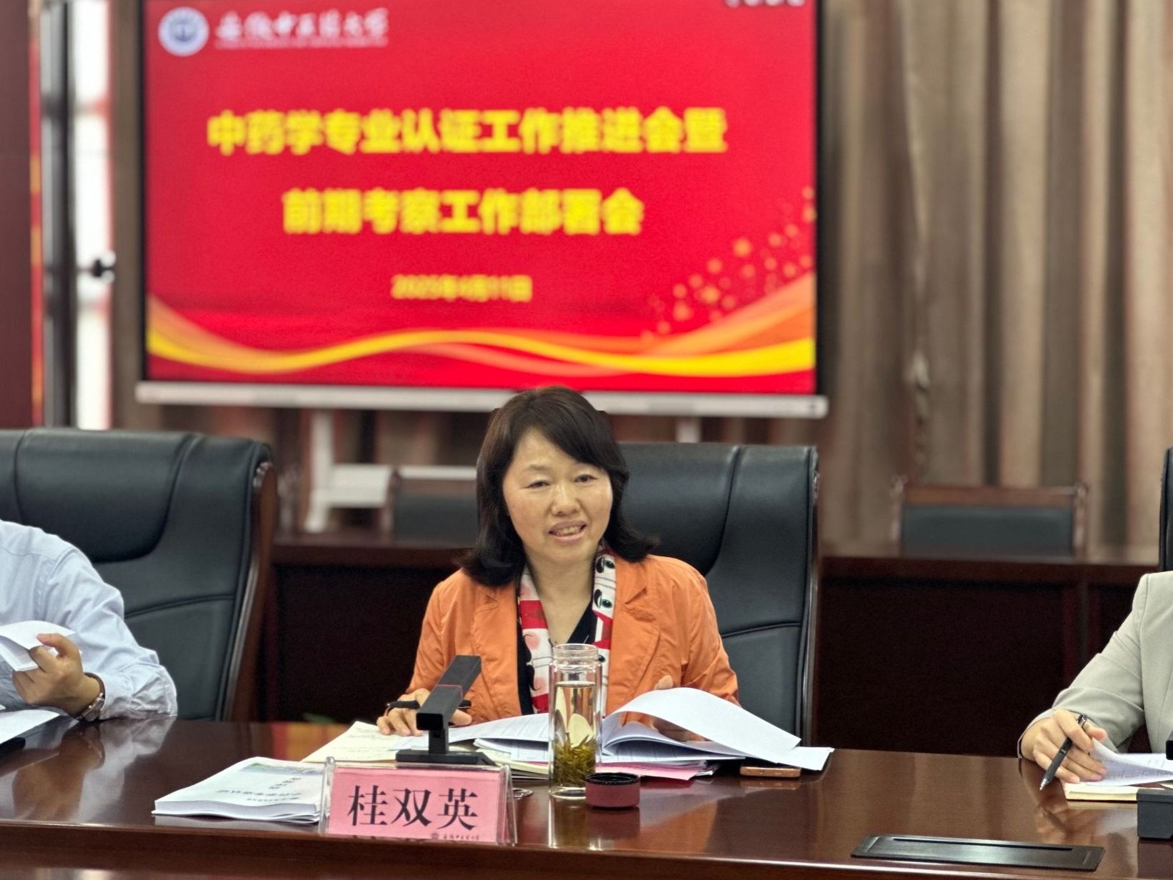 桂双英充分肯定了学校前期专业认证准备工作取得的成效,她指出,专业认证相比本科教育教学审核评估具有考察维度更广、评价指标更细的特点,需重点把握教学组织管理、课程建设质量、支撑材料规范等核心环节。她强调,专业认证认证的不仅是一个专业,而且是对学校教育教学质量的全面检验,要求全校上下提高站位、系统推进。她要求,一要高度重视,精心组织。专业认证工作办公室建立动态响应机制,全校上下密切配合,协同联动。二要认真研读自评报告,突出访谈实效。针对专家可能关注的师资队伍建设、实践教学环节等关键问题做好应答预案。三要坚持问题导向和任务导向,建立“即时反馈—快速整改”的工作机制,以自查结果为导向,及时整改,以前期考察各项工作任务为导向,认真准备,及时响应,确保学校顺利通过中药学专业认证前期考察。