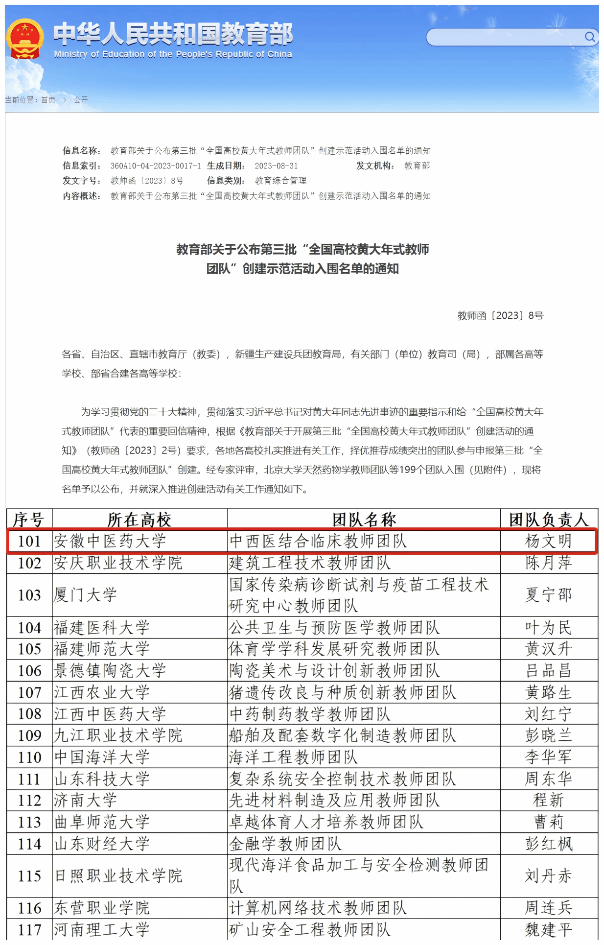 一附院“中西医结合临床教学团队”获批第三批全国高校黄大年式教师团队