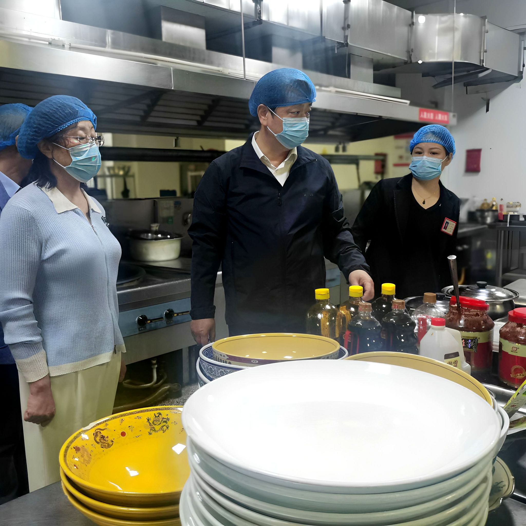 随后,督查组来到少荃湖校区学生食堂,按照食品安全管理流程,对食材验收、入库、仓储、初加工、烹饪、留样、售卖、餐饮具消毒等各个环节进行了细致深入的检查。检查过程中,督查组随机核查从业人员的健康证,并与食堂负责人、第三方监督机构工作人员进行深入交流,全面了解食堂日常管理工作开展情况、学生反映的突出问题和相关管理制度落实情况。
