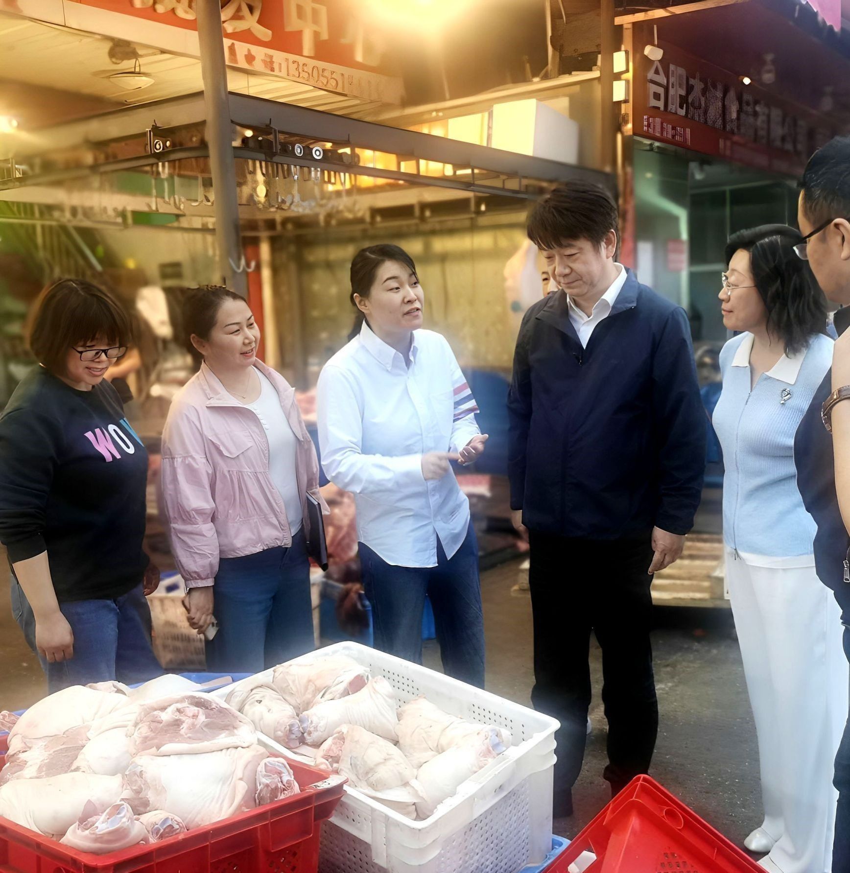 凌晨4:30,督查组一行抵达合肥百大周谷堆农产品批发市场,从食品安全源头查起,仔细查看学校餐饮企业采购的蔬菜、肉类等食材的新鲜度与品质;详细询问供应商食材来源、运输储存条件及检验检疫证明等关键信息,认真核查可能影响食品安全的相关问题。