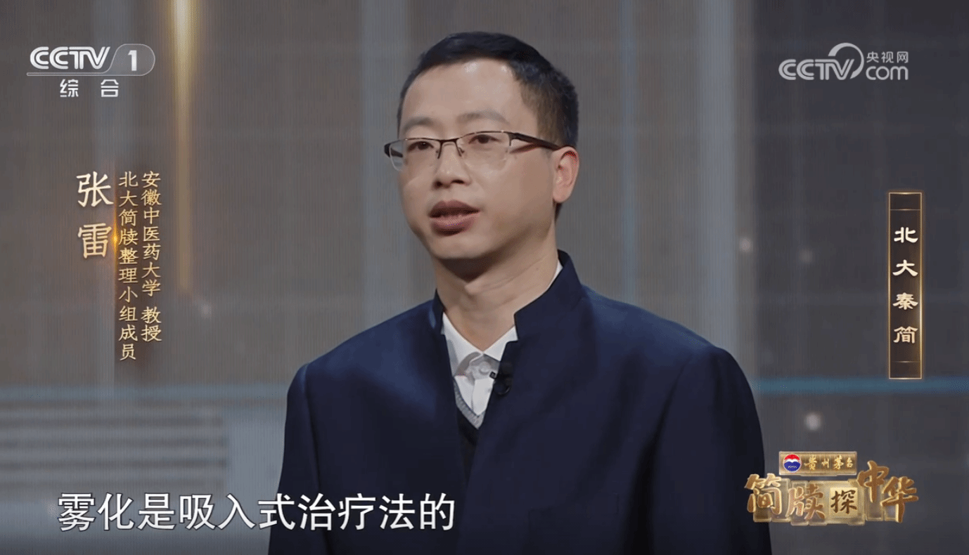 这次节目中,我校张雷教授与中山大学教授、北大简牍整理小组成员杨泽生一同解读了北大秦简的最新研究成果——“治喉痹方”。张雷教授介绍到,“喉痹相当于现在我们说的咽喉炎这一类的疾病,它的治疗方法非常类似于现在使用的雾化治疗方式,雾化是吸入式治疗法的一种重要方式,这是我国目前发现的最早的关于‘吸入治疗法’的记载。”“治喉痹方”将中医采取的熏吸疗法治疗咽喉疾病的记载向前推进到了秦代。