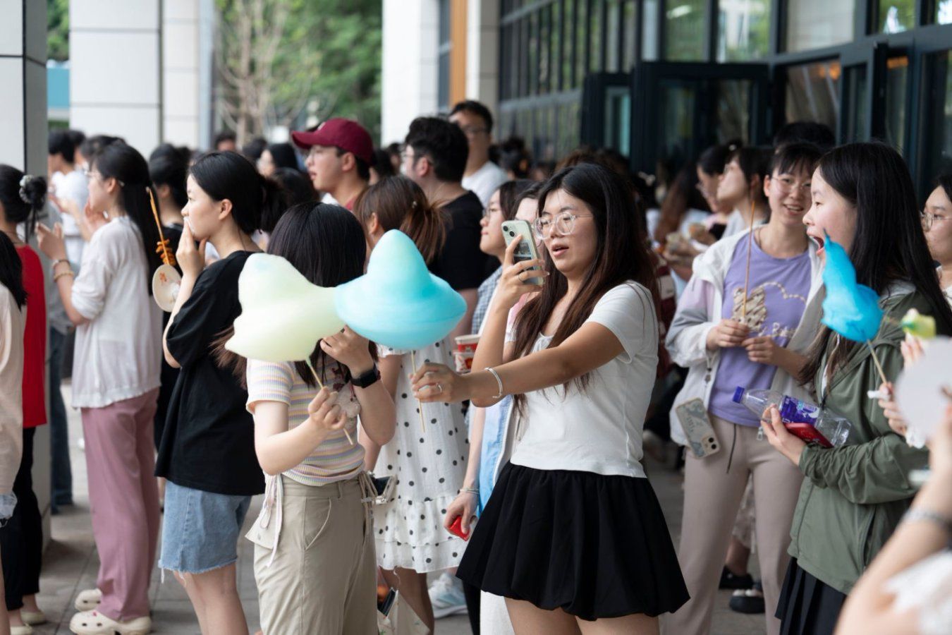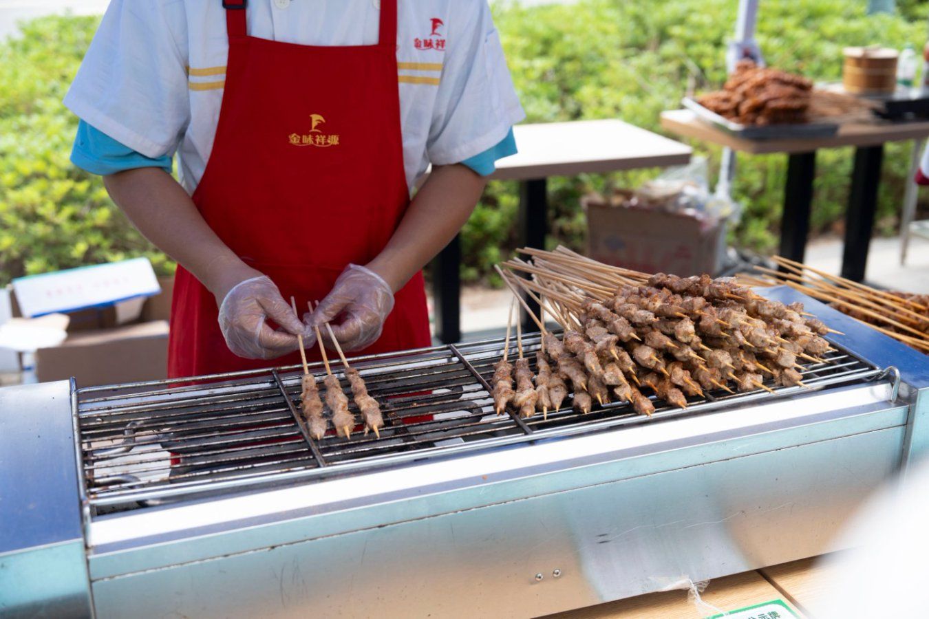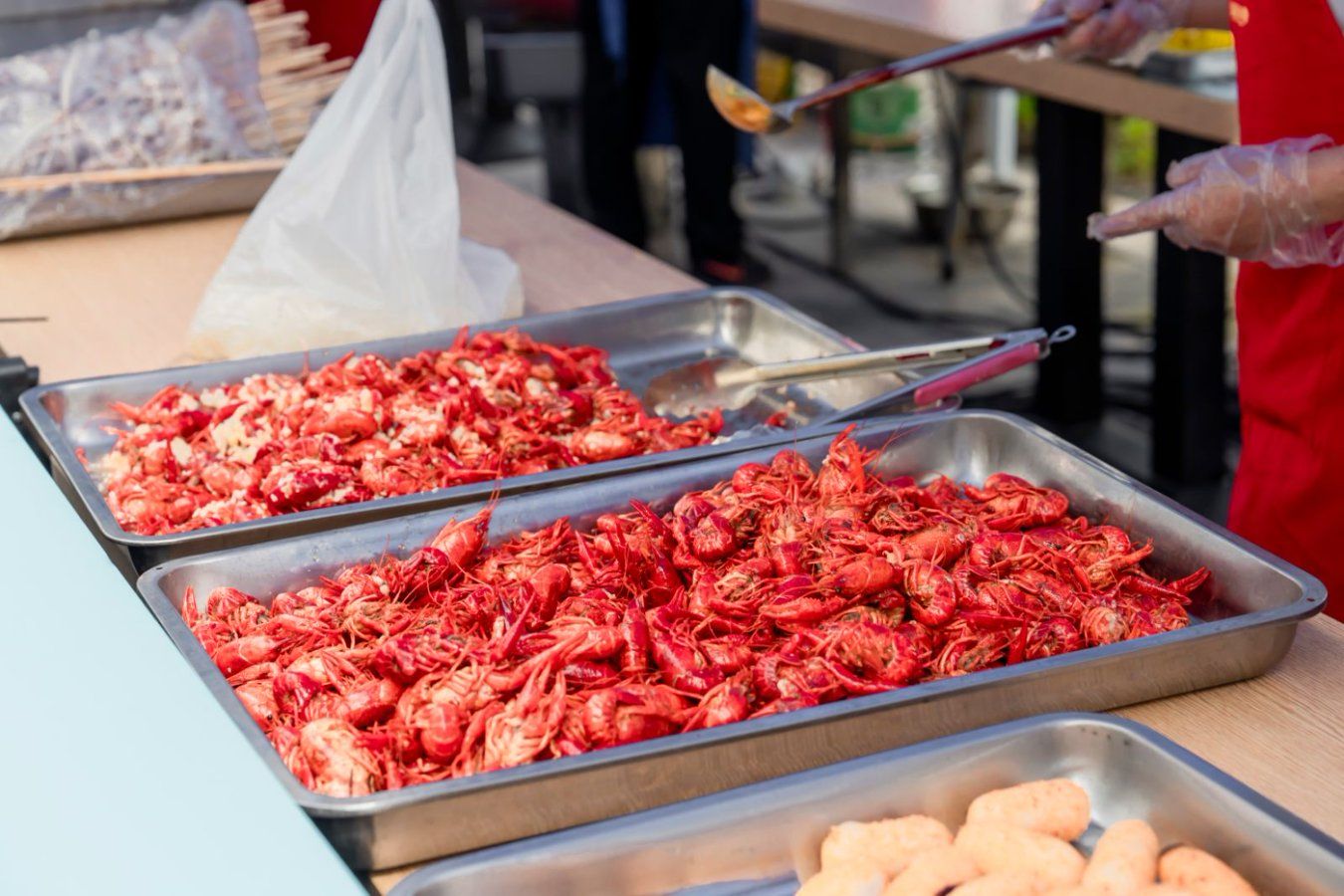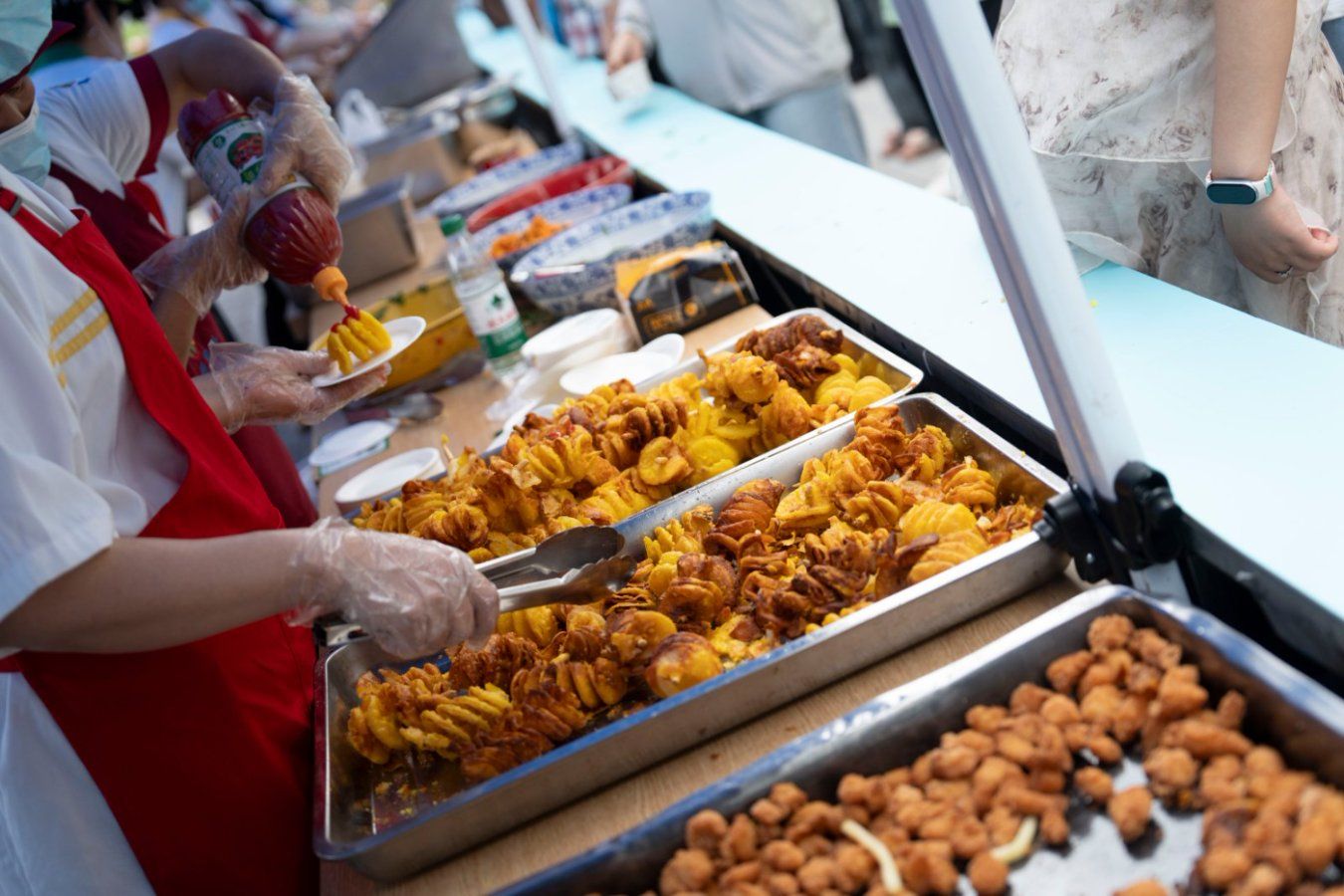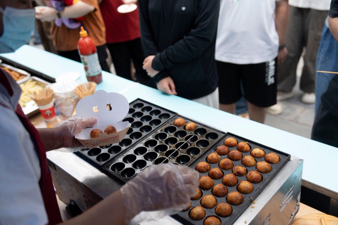 香辣龙虾、蒙古烤肉、铁板鱿鱼、长沙臭豆腐、韩式炒年糕、黄金薯塔、烤面筋、冰粉、章鱼小丸、榴莲酥、金丝卷、橙汁饮料、棉花糖、传统糖画....活动现场精心准备了十余种特色美食供大家免费品尝,美食香气四溢,为师生带来了一场舌尖风味之旅。