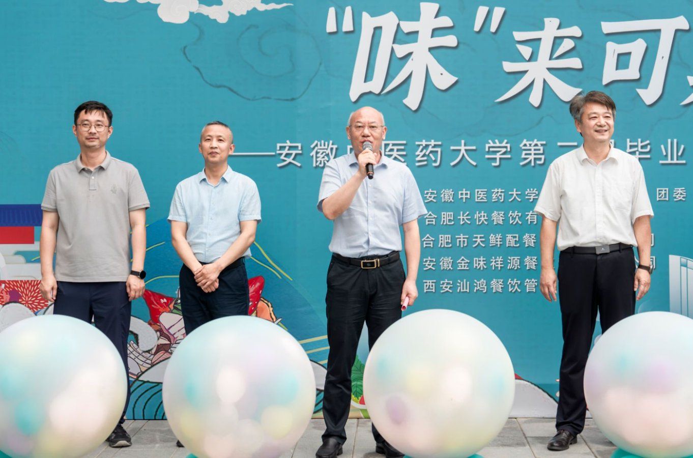 周新发宣布第二届校园美食节正式开幕。聂久胜向踊跃参与活动的师生表示热烈欢迎,对为活动筹备付出辛勤努力的工作人员致以诚挚感谢。聂久胜充分肯定美食节在丰富校园文化生活、传承中医药文化方面的重要意义,同时表达了对毕业生的美好祝福和殷切期望。