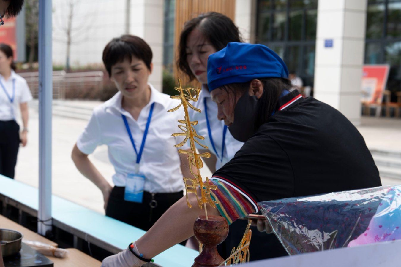 开幕式后,精彩的文艺表演与互动小游戏轮番上演,将现场气氛推向高潮。国家级非遗表演川剧变脸,凭借变幻莫测的脸谱和精湛技艺,让师生近距离领略到传统文化的震撼魅力;糖画艺人以娴熟手法,用一勺一铲勾勒出栩栩如生的花鸟鱼虫,引得同学们纷纷驻足观赏,赞叹传统手工艺的独特匠心与智慧。