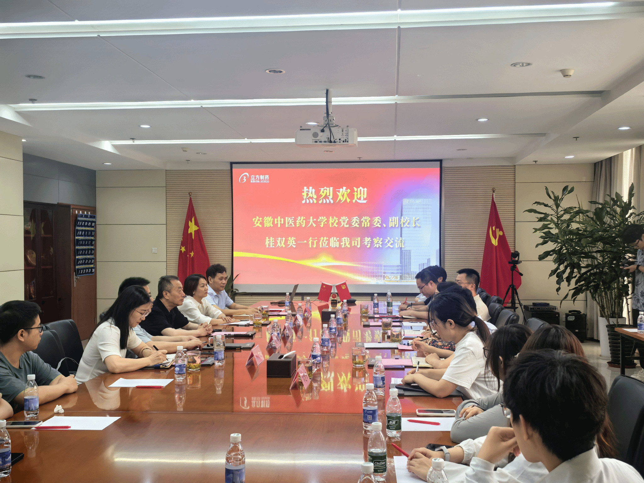 为深化校企协同育人机制,推动人才培养与企业需求精准对接, 6月18日下午,学校党委常委、副校长桂双英带队走访调研合肥立方制药股份有限公司,组织部、统战部、中西医结合学院、药学院有关负责同志及师生代表等一行30余人参加。合肥立方制药股份有限公司董事长季俊虬,副总经理、董事会秘书夏军,行政总监、党支部书记方芸热情接待了我校一行。