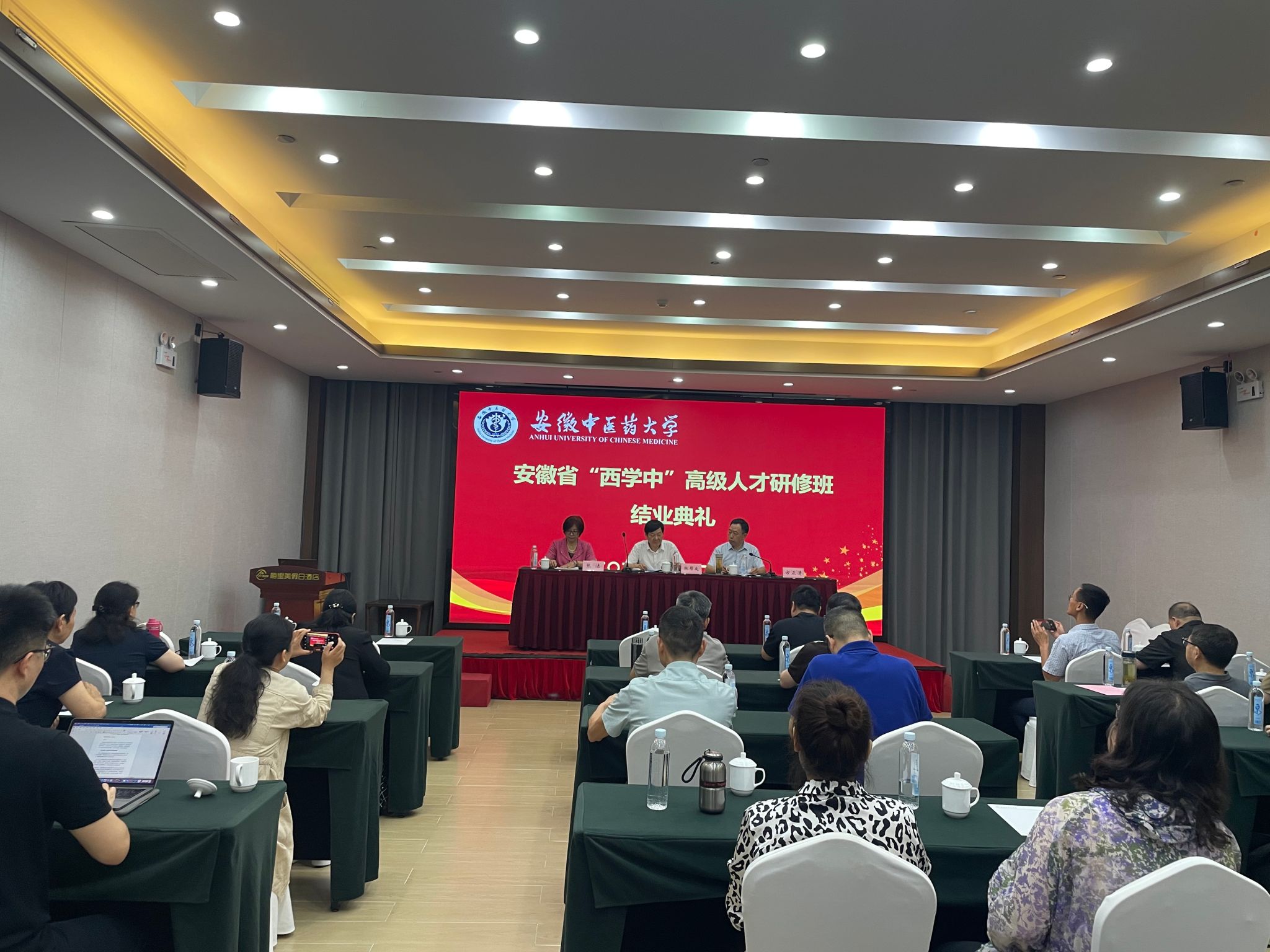 近日,首届安徽省“西学中”高级人才研修班圆满完成各项培训任务顺利结业,安徽省中医药管理局副局长张帮友、一级调研员张洁,安徽中医药大学继续教育学院主要负责同志出席结业典礼,首期安徽省“西学中”高级人才研修班培养对象参加结业典礼。