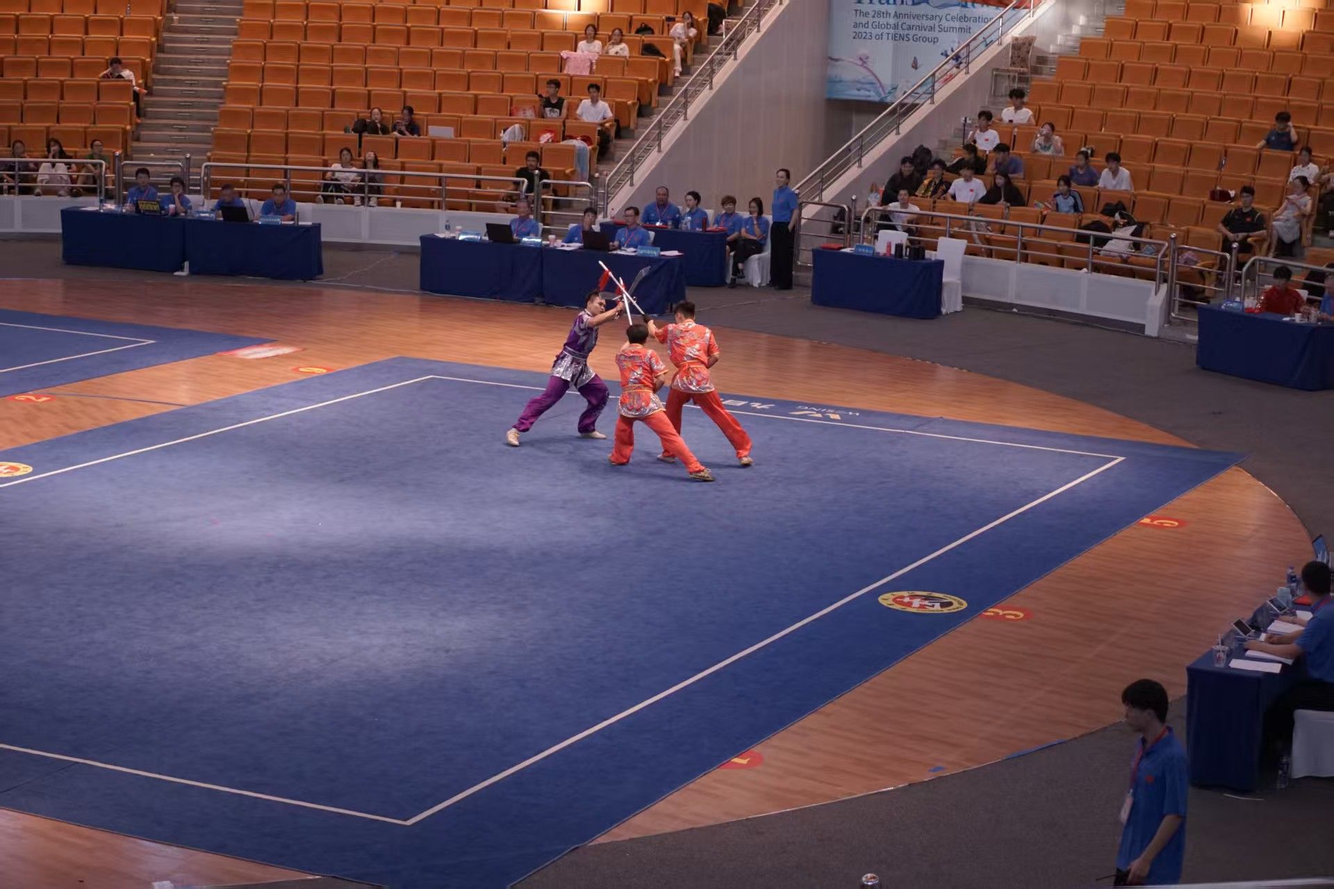 2025年中国大学生武术套路锦标赛于7月27日至31日在天津武清区举行。我校武术队在教练裴珮、黄欣茹指导下,在甲组赛场上,不畏强手,奋勇拼搏,共夺得2枚金牌、2枚银牌、3枚铜牌及多项前八名,总计收获16项奖项。