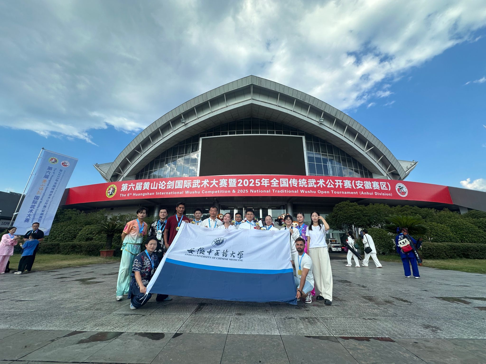 8月15日-20日,第六届黄山论剑国际武术大赛暨2025年全国传统武术公开赛(安徽赛区)在黄山市屯溪区圆满落幕。本次大赛由国家体育总局武术运动管理中心、中国武术协会、安徽省体育局联合主办,吸引了来自境内外的千余名武术精英同台竞技。安徽中医药大学武术代表队在此次大赛中表现卓越,凭借过硬的武术功底和顽强的拼搏精神,共斩获7枚金牌、8枚银牌、3枚铜牌,取得了竞赛成绩与精神文明双丰收。