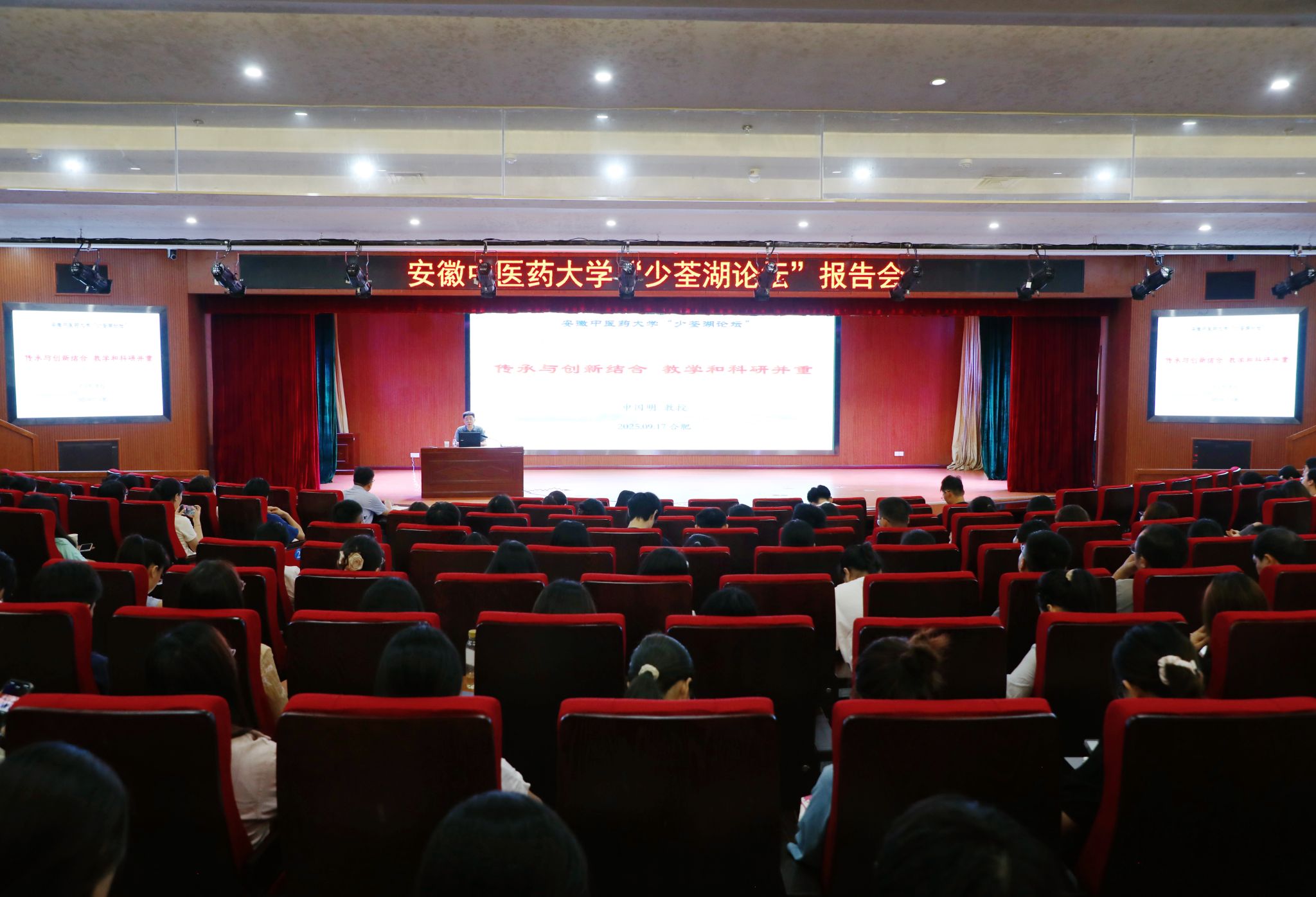 9月17日,学校举办“少荃湖论坛”第六场报告会。本次报告会邀请了教育部中西医结合类教学指导委员会委员,中国中西医结合学会教育工作委员会主任委员,安徽省高峰培育学科中西医结合学科带头人,安徽省首批高水平研究生导师和教学名师申国明教授作题为“传承与创新结合 教学和科研并重——我的师者初心”的学术经验报告。校党委常委、副校长魏骅主持论坛。