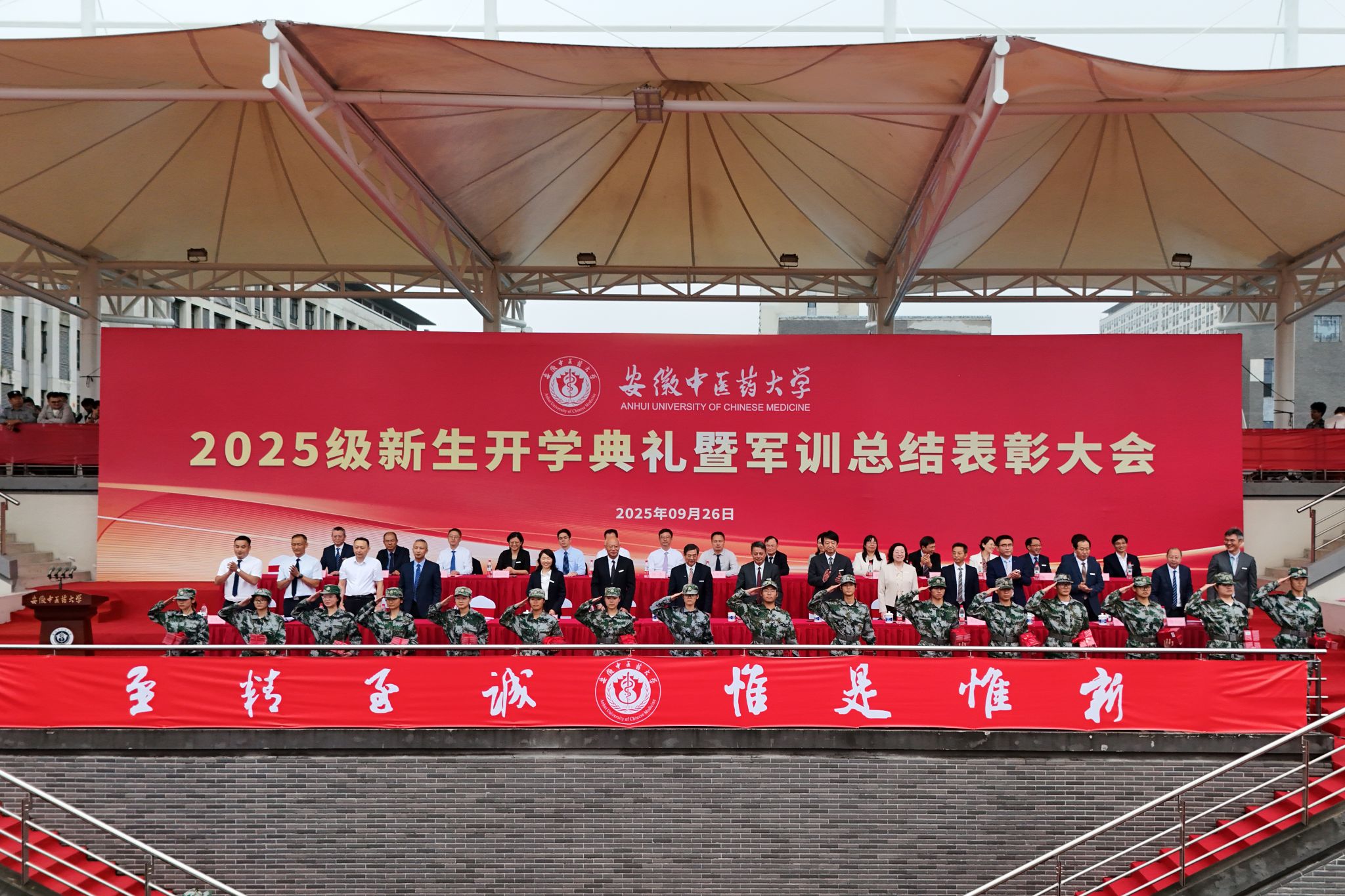 金秋送爽,玉露生辉。9月26日上午,安徽中医药大学少荃湖校区运动场旌旗招展,气氛热烈,学校2025级新生开学典礼暨军训总结表彰大会在此隆重举行,5300余名新生正式开启精研岐黄,笃行不倦的新篇章。