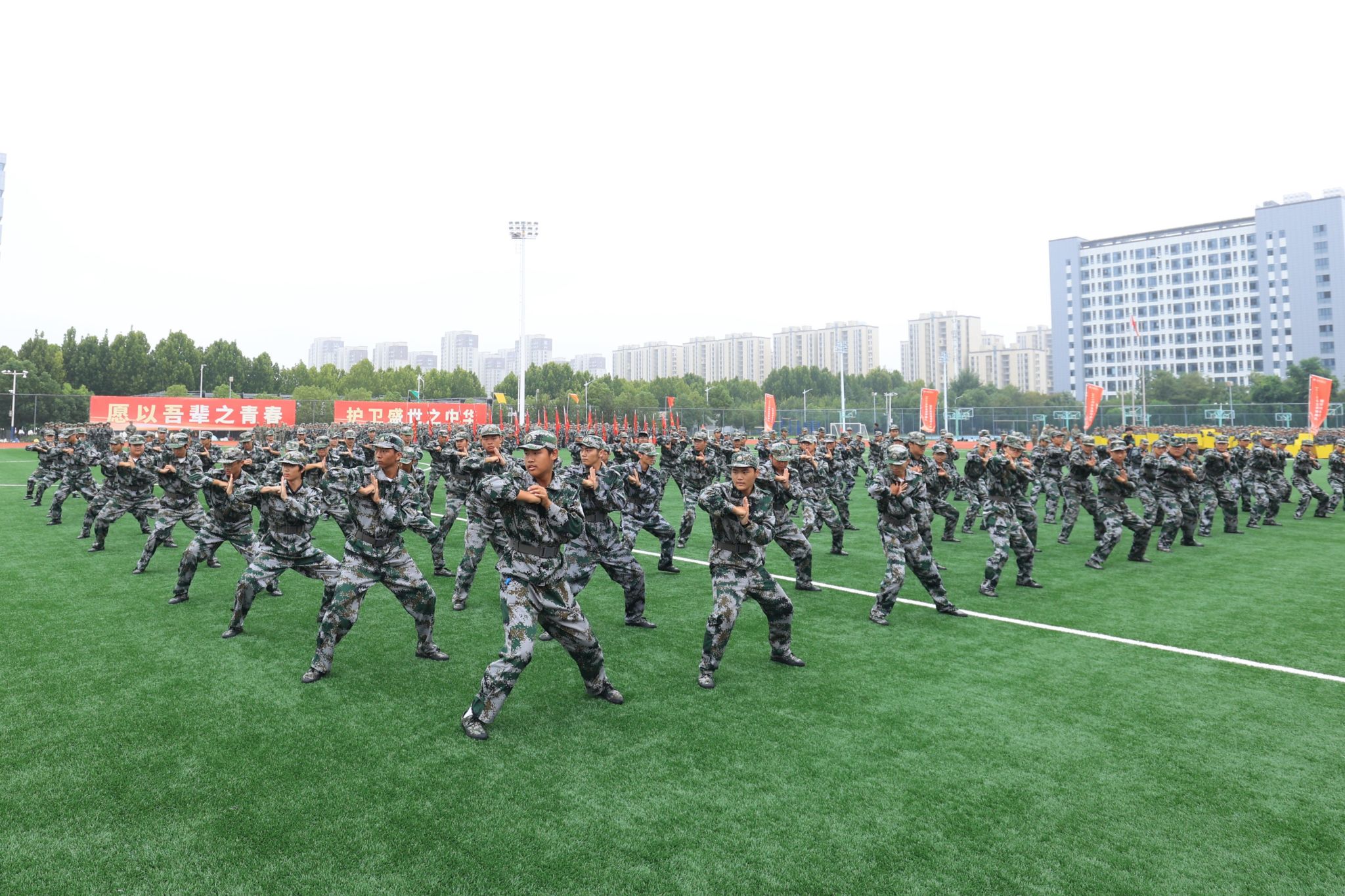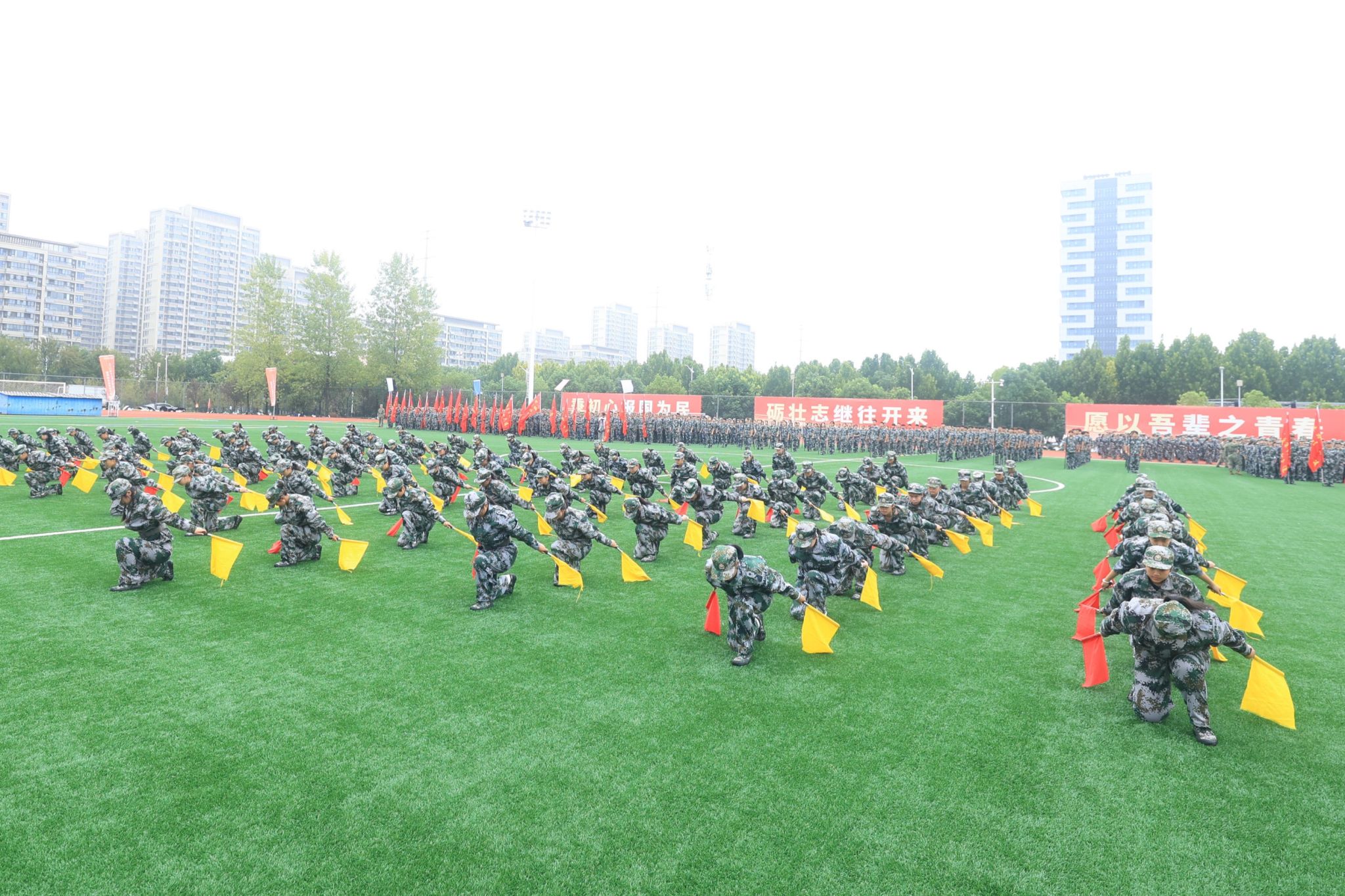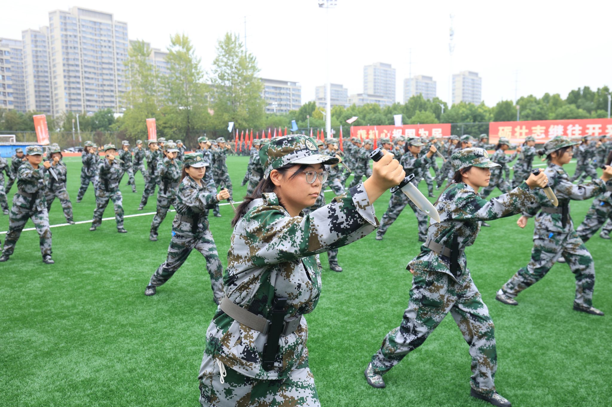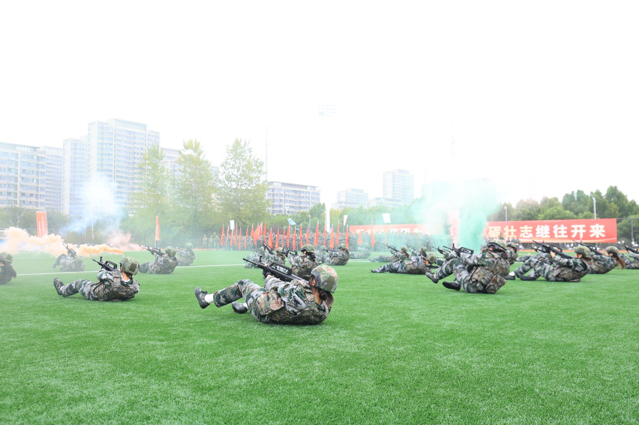 在军训成果展示环节,国旗护卫队步履铿锵,昂首而来,2025级新同学组成的各军训连队方阵紧随其后,进行分列式汇报,他们步伐整齐、口号嘹亮,依次走过主席台接受检阅。旗语、应急棍、捕俘刀、刺杀操、警卫拳、战术演练、数字方阵等多个特色方阵,每一个动作都精准无误,每一次呐喊都气贯长虹,这不仅是对训练成果的检阅,更是意志与团队精神的充分展示,精彩的汇报表演赢得了全场阵阵掌声。
