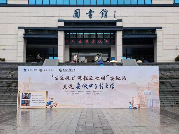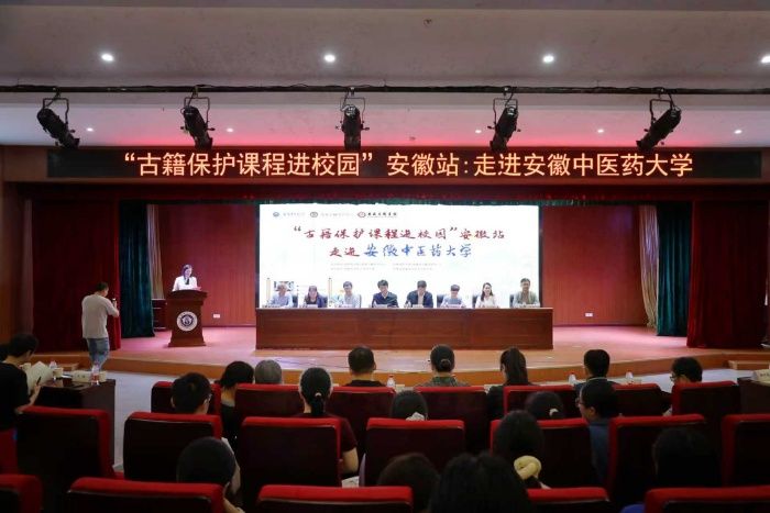 近日,由国家图书馆(国家古籍保护中心)、安徽省图书馆(安徽省古籍保护中心)主办,安徽中医药大学图书馆和团委共同承办的“古籍保护课程进校园”活动圆满举行,学校领导及师生代表共计200余人参加了本次活动。安徽中医药大学党委常委、副校长聂久胜、安徽省古籍保护中心主任、安徽省图书馆党委书记、馆长左金刚,以及安徽大学、安徽师范大学、合肥师范学院等兄弟院校专家共同出席本次活动。