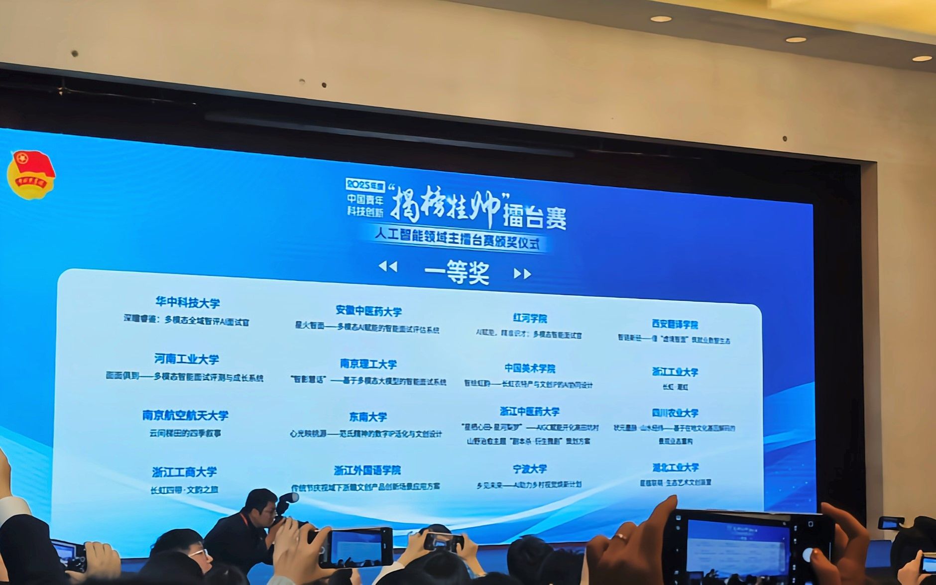 10月20日,2025年度中国青年科技创新“揭榜挂帅”擂台赛“人工智能领域”终审擂台赛在华东理工大学圆满落幕。安徽中医药大学医药信息工程学院(讯飞现代产业学院)两支参赛队伍表现卓越,从全国众多顶尖高校团队中脱颖而出,分别荣获国家一等奖和国家二等奖,充分展现了我校学子的卓越风采和校企协同育人的显著成效。