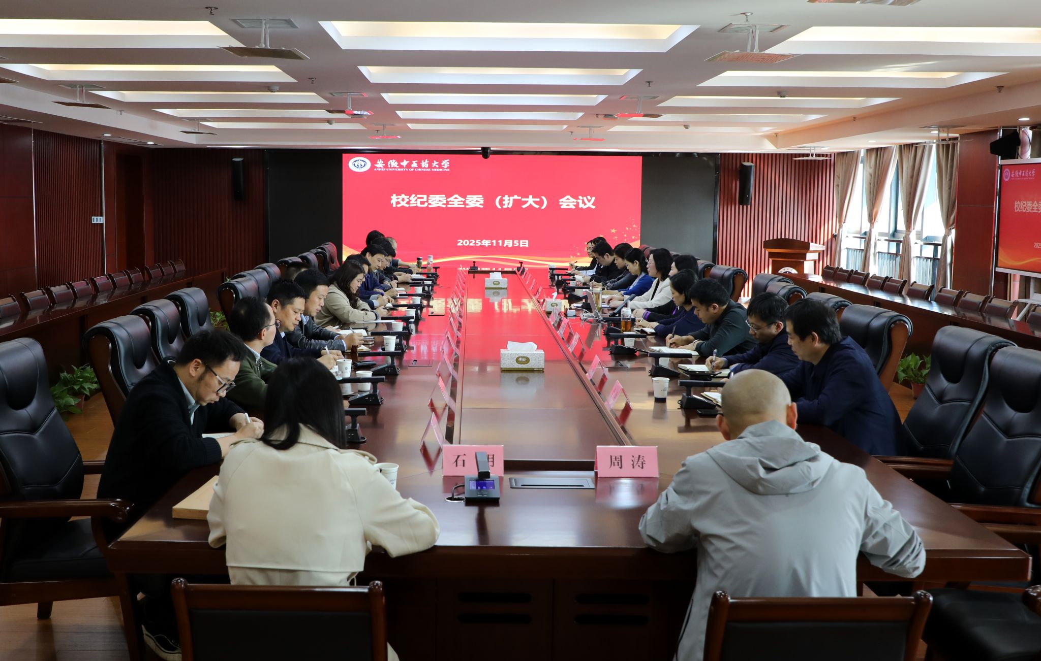 11月5日下午,学校召开校纪委全委(扩大)会议,专题学习党的二十届四中全会精神,研究部署贯彻落实工作。校党委常委、纪委书记、监察专员詹灵杰主持会议,校纪委委员、二级纪委书记(纪检委员)及纪委办公室全体人员参加会议。