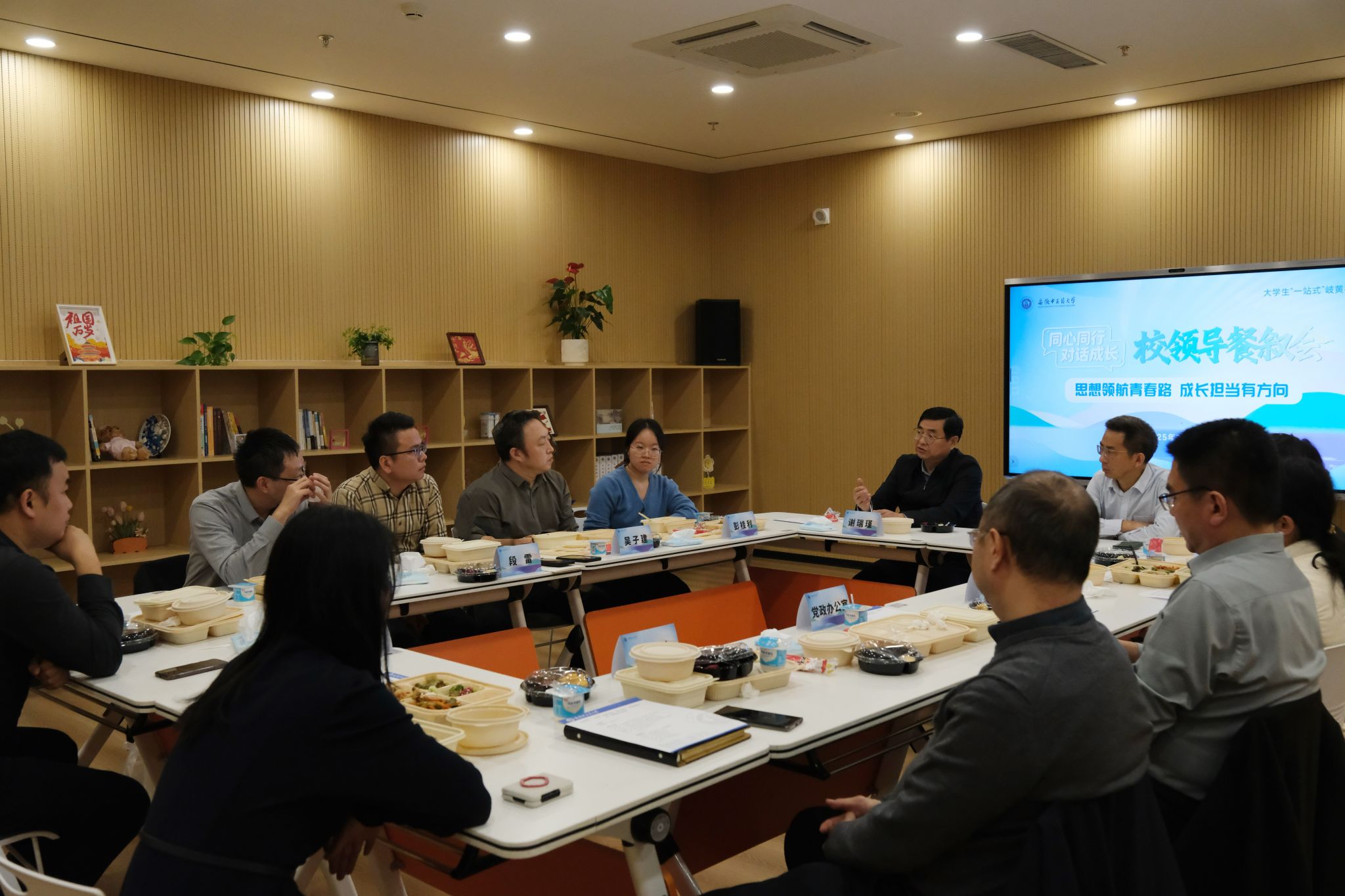 为构建常态化、近距离的师生交流机制,推动领导、管理等育人力量深入学生社区,及时回应师生关切,大学生“一站式”岐黄社区举办校领导餐叙会。11月5日中午,校党委书记谢瑞瑾出席首期活动,围绕“思想领航青春路,成长担当有方向”主题,与师生共进午餐、亲切交流。校党委常委董玉节、师生代表及相关职能部门负责人共同参加。