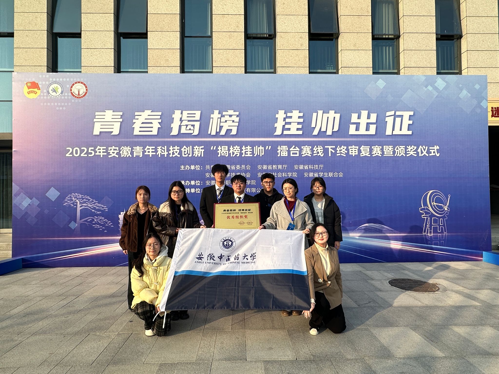 12月8日,由共青团安徽省委、安徽省教育厅、安徽省科技厅、安徽省科学技术协会、安徽省社科院、安徽省学生联合会共同主办的2025年安徽省青年科技创新“揭榜挂帅”擂台赛线下终审复赛在安徽交通职业技术学院落下帷幕。经过激烈角逐,我校参赛项目《灵芝发酵产物靶向提取与多维功效成分鉴定及产品开发》(学生:周芯蕊、周润晗等,指导教师:彭灿、左池靖、张静)荣获大赛一等奖,学校同时获评优秀组织单位。