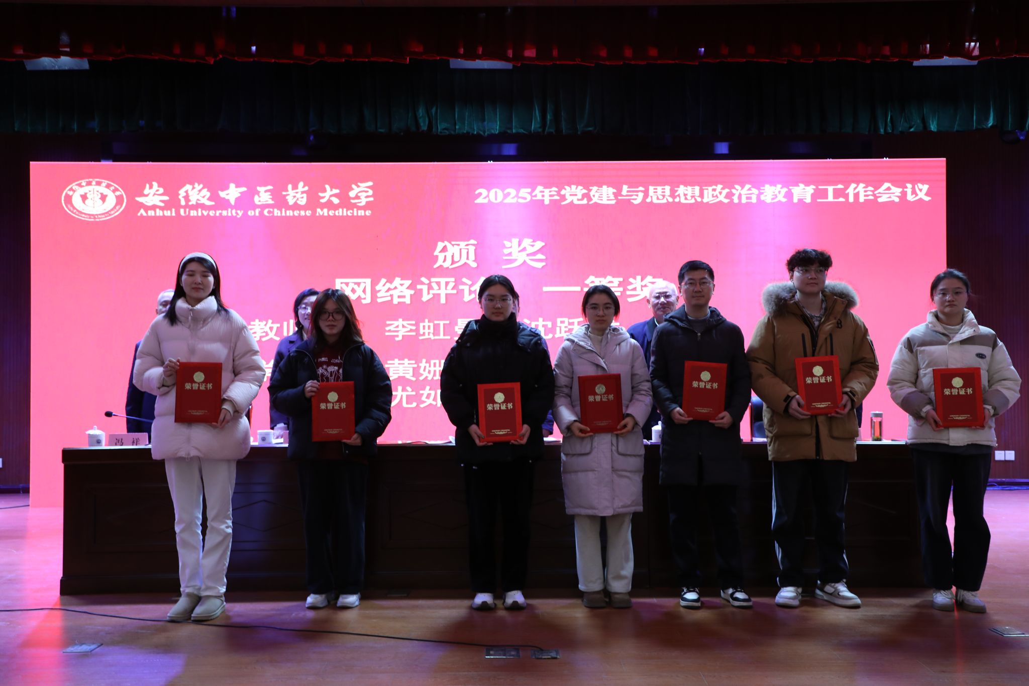 校党委常委、纪委书记、监察专员詹灵杰,校党委常委、组织部、统战部部长冯祥分别宣读此次会议论文、案例获奖名单和2025年师生原创网络评论大赛获奖名单,全体与会校领导为获奖代表颁奖。
