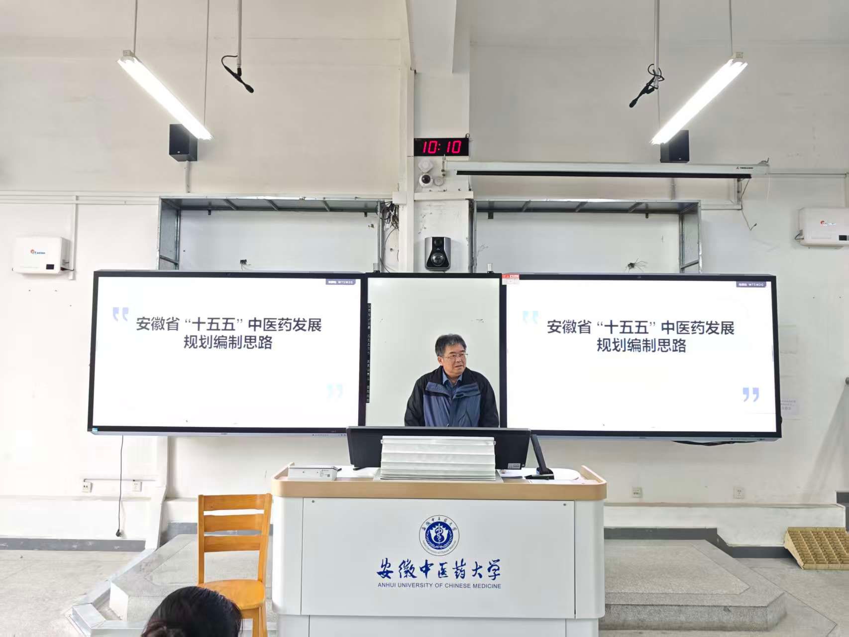 学校党委常委、副校长魏骅为医药经济管理学院2025级国际经济与贸易专业学生讲授《安徽省“十五五”中医药发展规划编制思路》。魏骅从安徽省中医药发展实际出发,深入浅出地解读了规划编制的背景、战略重点与未来展望,通过案例分析等教学方法,引导同学们深刻认识中医药发展的时代机遇与安徽的使命担当。课堂上,他主动回应学生的思想困惑,勉励同学们主动融入发展大局,不断夯实专业基础,为促进中医药传承创新发展和区域经济社会进步贡献青春力量。