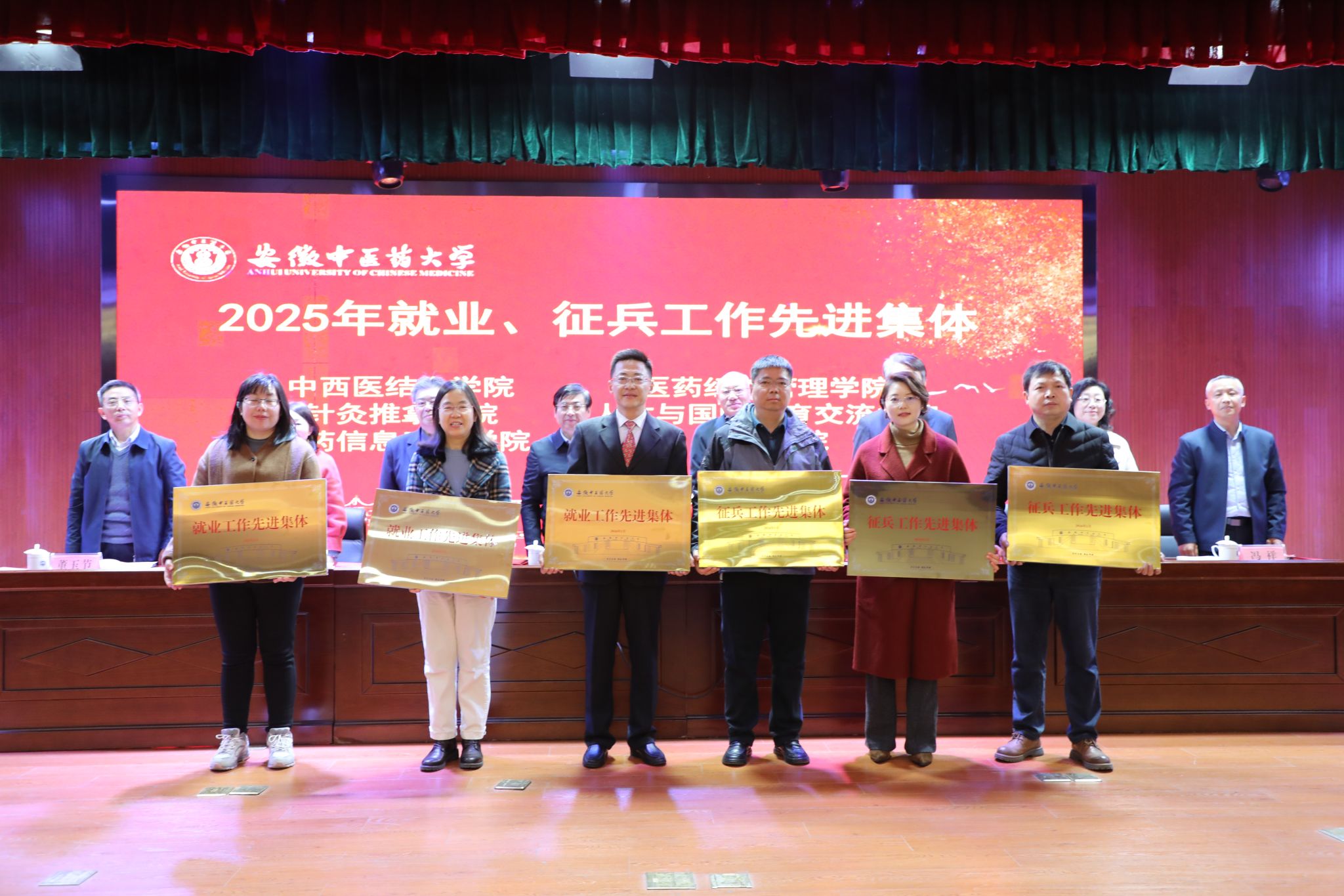 会上,中西医结合学院党委书记李舰作为先进集体代表、药学院聂欣悦老师作为先进个人代表分别发言,分享了宝贵的实践经验。大会对2025年度就业与征兵工作先进集体和先进个人进行了表彰。