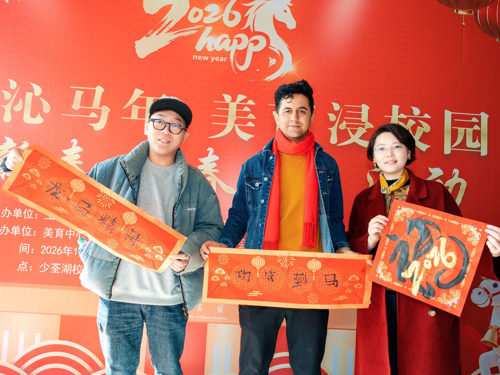 为加强国际学生美育工作,来自加纳、加拿大、摩洛哥、索马里等国家的留学生李向阳、凯文等也加入“这场非常有纪念意义的活动”,写下“马到成功”“龙马精神”等春联,为自己和家人许下马年美好的祝愿。