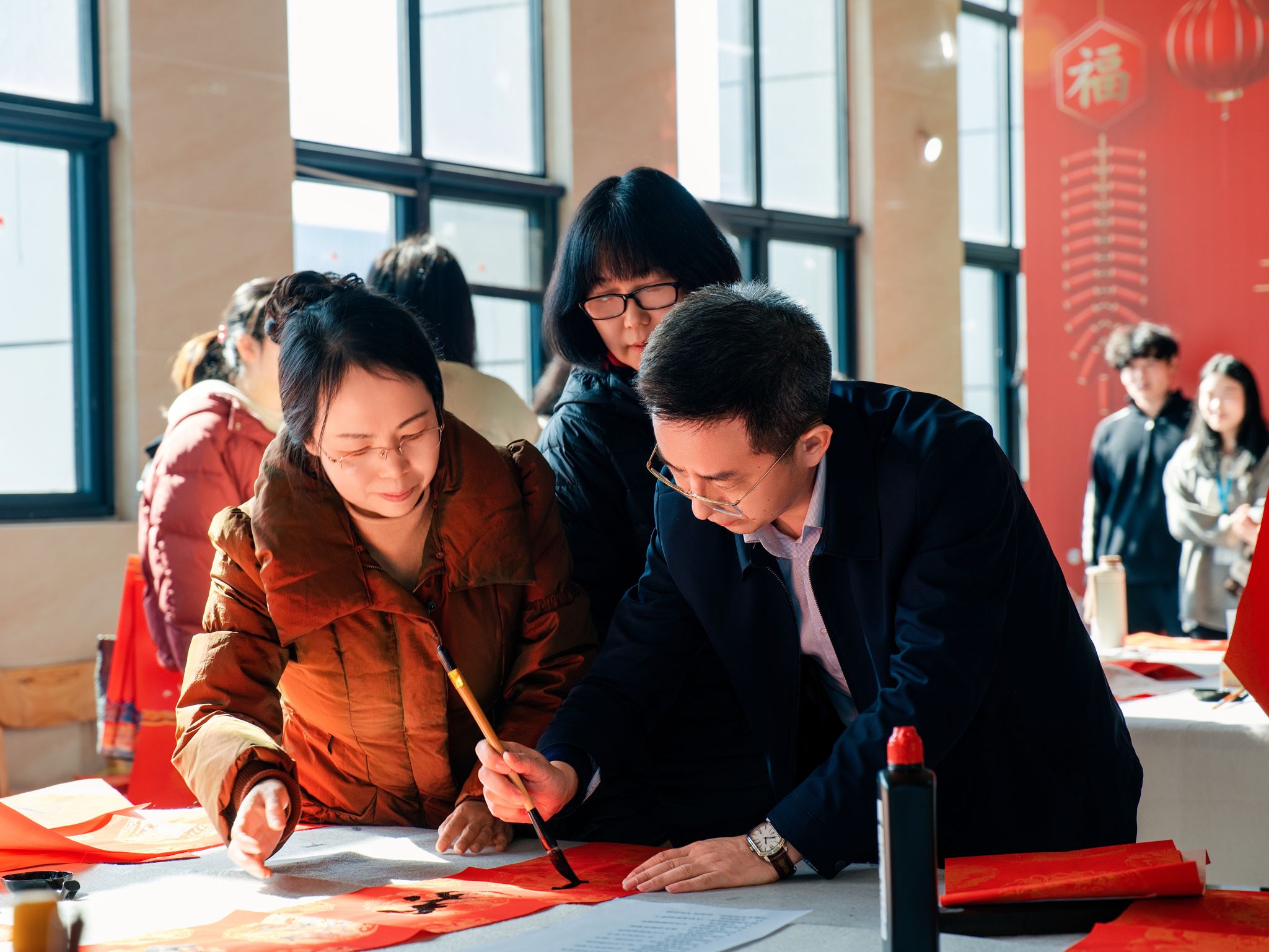 墨香四溢,暖意融融。学校党委书记谢瑞瑾,党委副书记周新发,副校长桂双英,纪委书记、监察专员詹灵杰,党委常委宣传部部长董玉节等领导亲临现场,为活动点赞,为大家送福。
