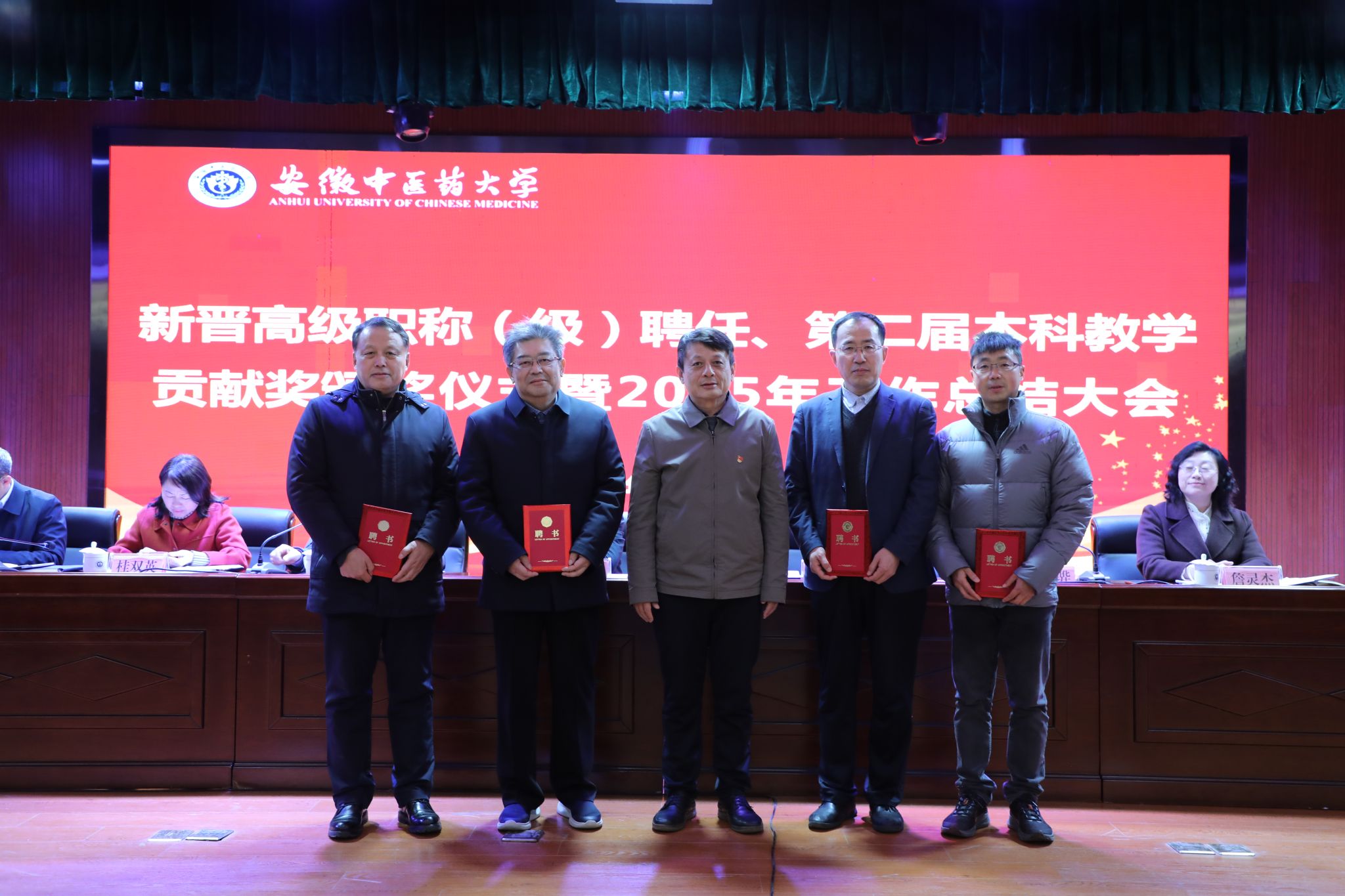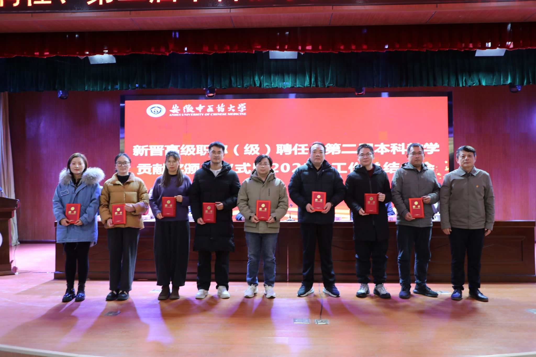 副校长魏骅、桂双英宣读了有关聘任文件和表彰文件,许钒逐一向新晋高级职称(级)人员颁发聘书,与会领导向第二届本科教学贡献奖获得者颁奖。