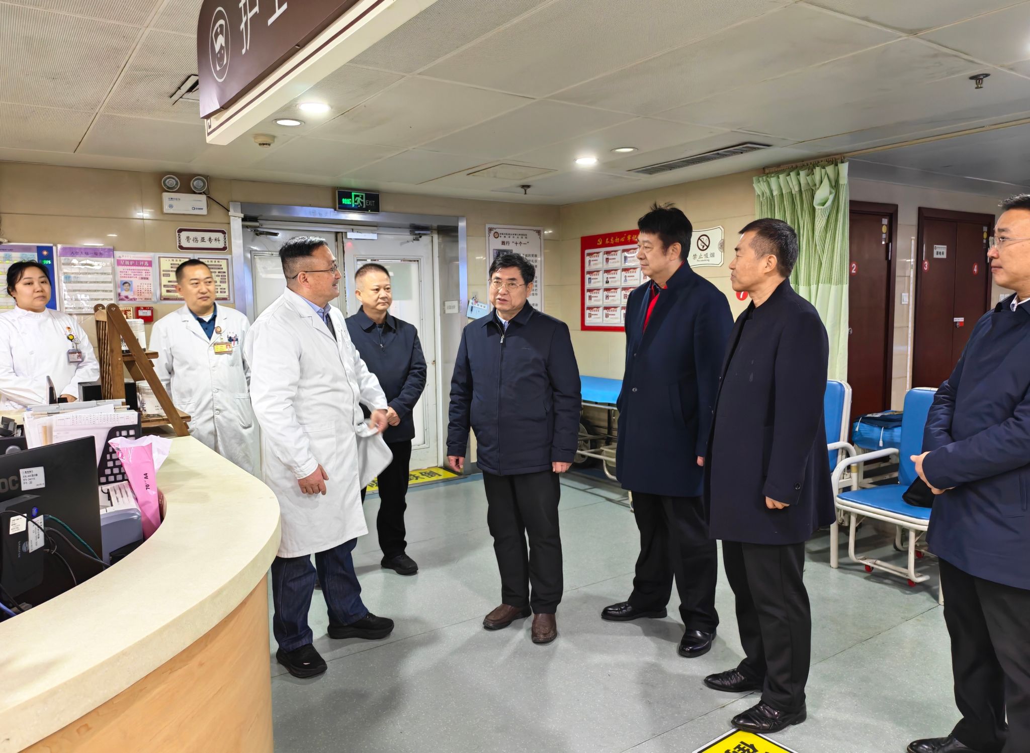谢瑞瑾先后前往第一临床医学院、第二临床医学院、曙光医院安徽医院和神经病学研究所附属医院,深入内分泌科、甲状腺乳腺外科、神经外科、肛肠科、急诊科、骨伤科等临床一线,与在岗医务人员亲切交谈,详细了解节日期间医疗运行、患者收治和值班安排等情况,对大家恪尽职守、护佑健康的辛勤付出表示衷心感谢。