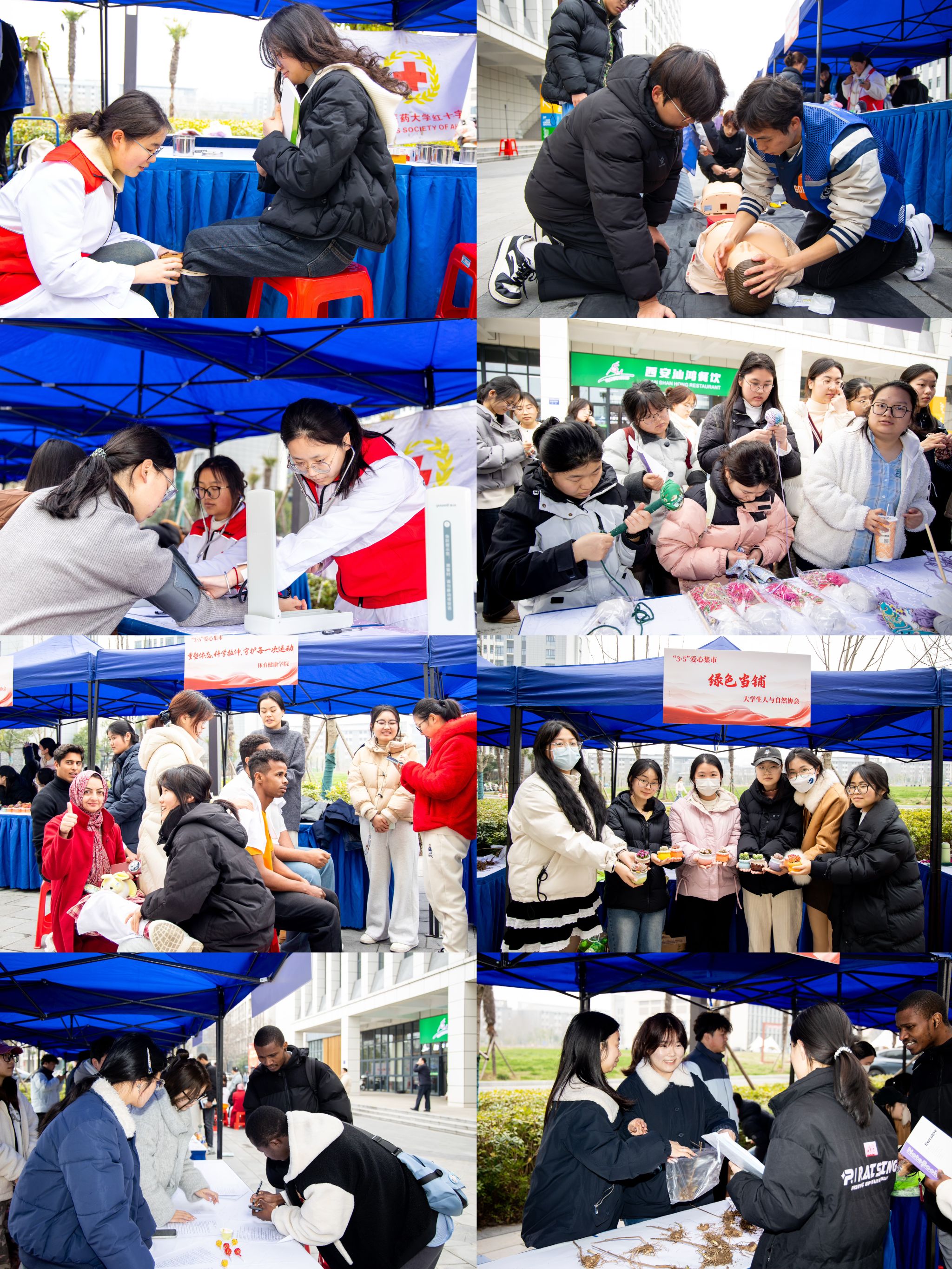 除集市活动外,针灸推拿学院、中西医结合学院、第一临床医学院的志愿者们还深入周边社区及医院,开展血压测量、健康咨询、康复指导、爱心导诊等服务,将专业医疗知识转化为服务群众的实际行动,实现了“校内+校外”服务网络的双覆盖。据统计,3月5日当天,全校累计170余名志愿者参与活动,服务师生及市民超1000人次,赢得广泛好评。
