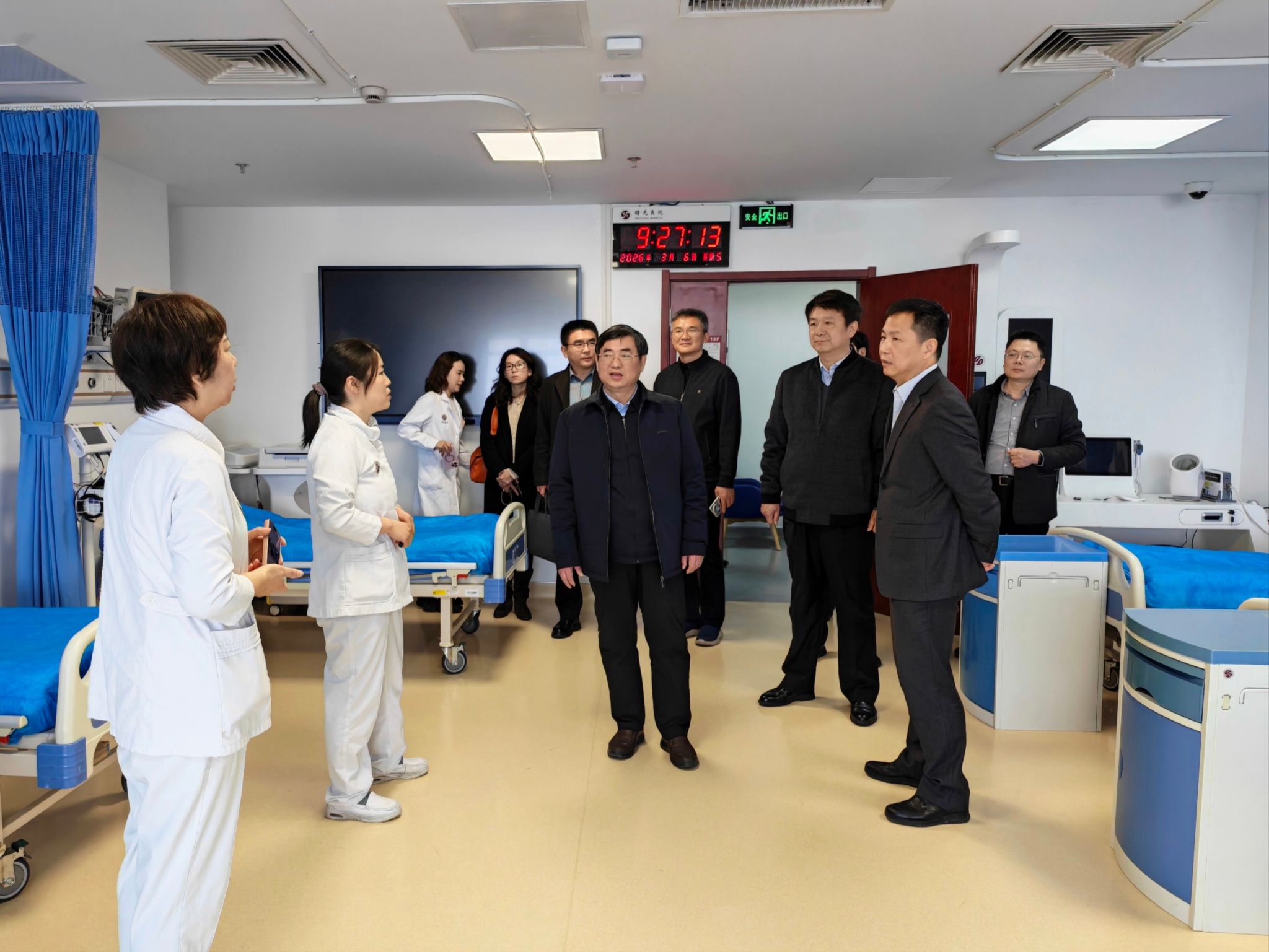 在上海中医药大学附属曙光医院期间,谢瑞瑾一行实地考察医院运营情况,与医院党委书记周强峰,党委副书记、副院长高月求,副院长元唯安等开展座谈交流,就国家区域医疗中心项目推进、资源整合、运营管理等交换意见。