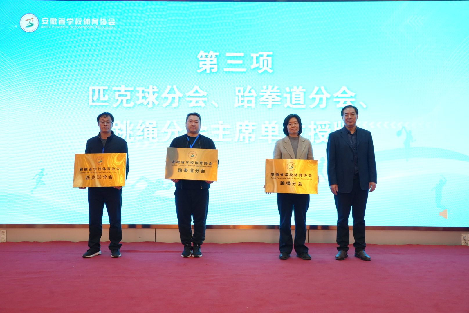 我校高度重视体育工作,将以此次被授予跆拳道分会主席单位为契机,加强与省内外高校间的交流与合作,整合资源,凝聚力量,共同推动安徽省学校跆拳道运动的普及与提高。(温健伟/文 彭小雷/图 吴臣军/审核 陈牧/编发)