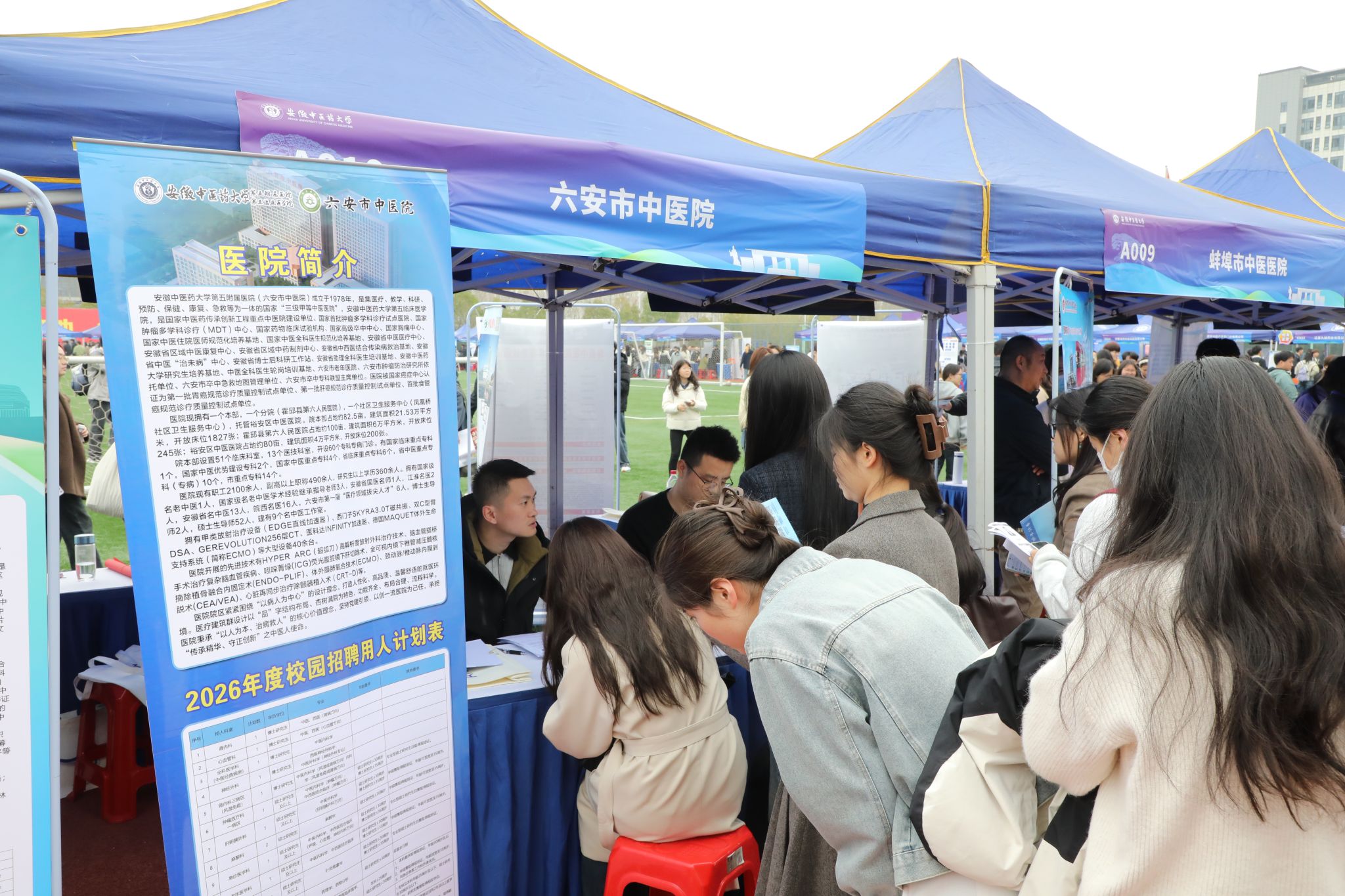 3月27日,由安徽省教育厅、安徽省人力资源和社会保障厅、安徽省卫生健康委员会、安徽省中医药管理局联合主办的“人才兴皖 ‘就’在江淮”安徽省2026届高校毕业生省级系列就业招聘会中医药类春季专场招聘会在我校成功举办。