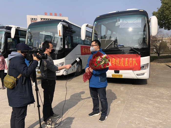 【疫情防控】祖国需要我,我就到最前线去 学校4名第二批援鄂抗疫医疗队队员出征湖北2月4日下午,安徽中医药大学第一附属医院参加安徽省援鄂抗疫医疗队(第二批)的4名队员正式出征湖北。在接到省卫生健康委关于组派安徽省第二、三批医疗队援助湖北应对新型冠状病毒感染的肺炎疫情的通知后,医院快速响应,向全院发出号召,医护员工纷纷积极响应,主动递交请战书,充分表达愿意舍小家顾大家,“若有战,召即来”的心声。