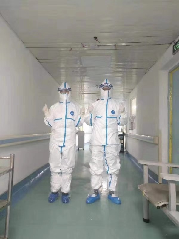 郜萍向记者描述了她第一个夜班的工作情况,半夜00:15依依不舍的离开了温暖的床,走在冷冷的街,虽然身上已经贴了四个暖宝宝,但还是不由自主的的打了个寒颤,因为防护服里穿不了太多的衣服,只能穿一层保暖内衣,白天还好,可到了寒冷的夜晚,真的好冷啊。
